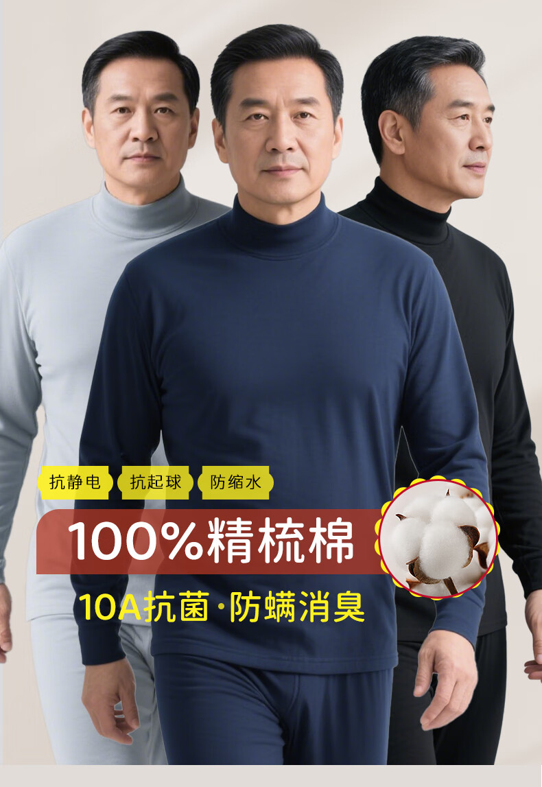 Hengyuanxiang middle-aged and elderly 100% cotton autumn clothes and autumn trousers men's antibacterial thermal underwear set base thin dad winter