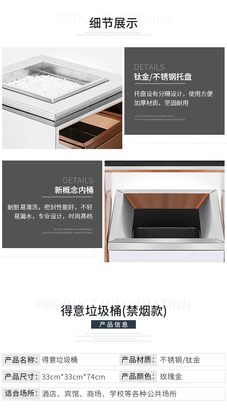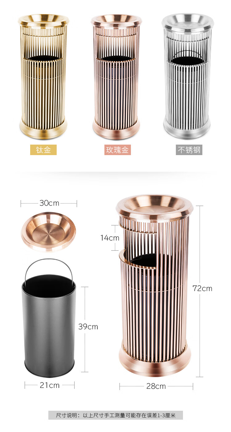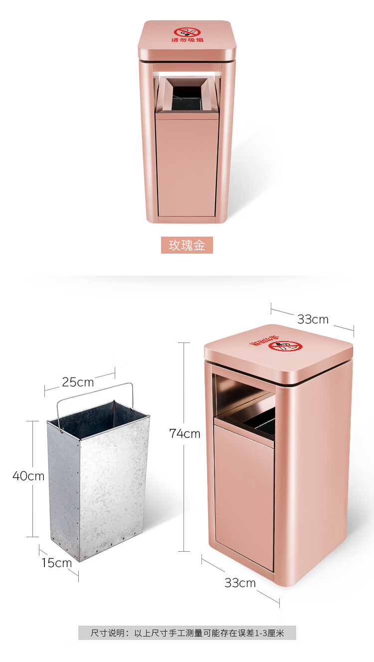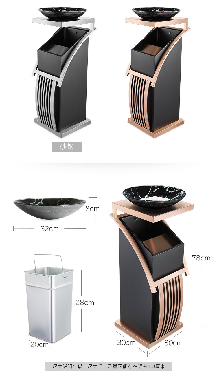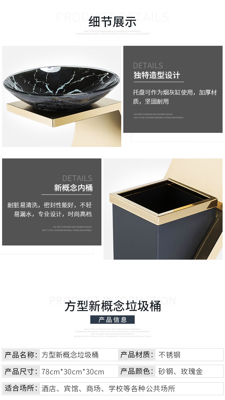 Supercloud (Shukou) hotel trash can ashtray stainless steel lobby vertical outdoor hotel fashion with inner bucket corridor with ashtray ash bucket square bucket A-178B rose gold
