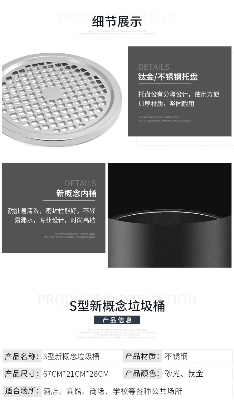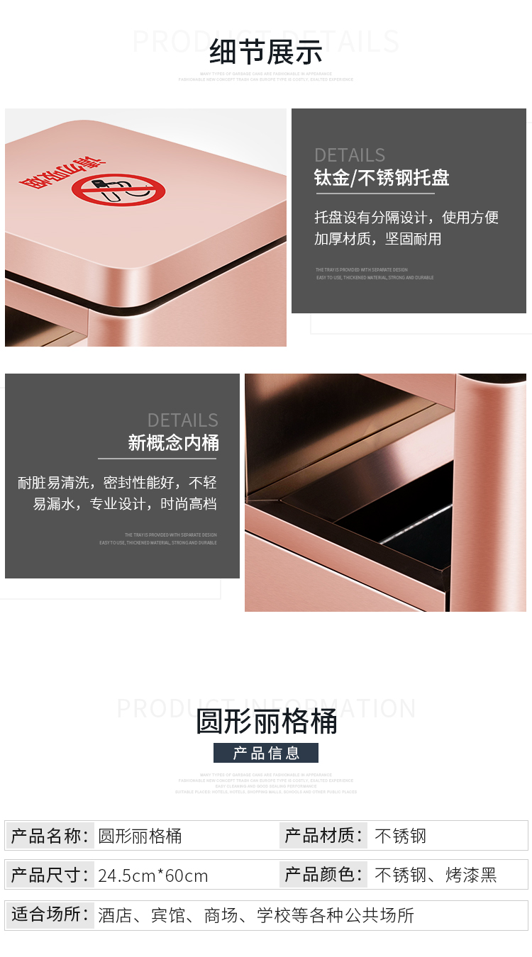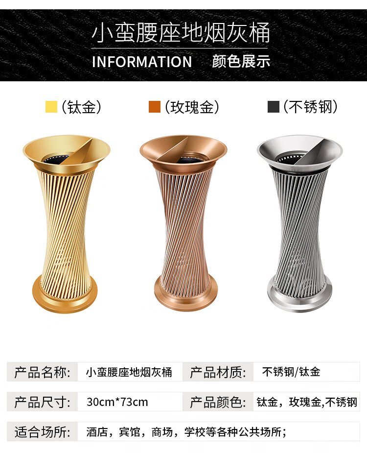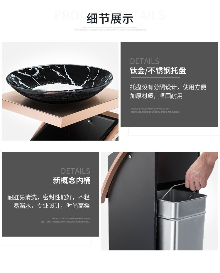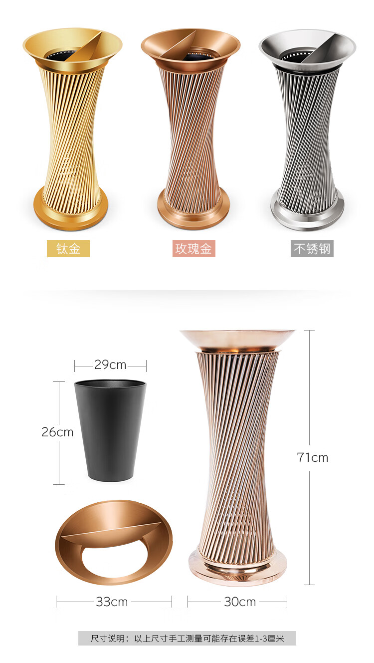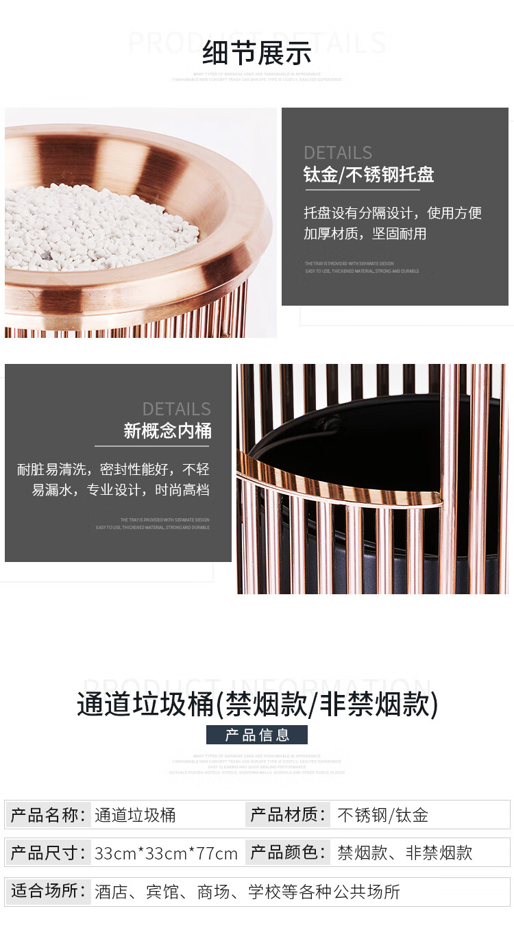 Supercloud (Shukou) hotel trash can ashtray stainless steel lobby vertical outdoor hotel fashion with inner bucket corridor with ashtray ash bucket square bucket A-178B rose gold