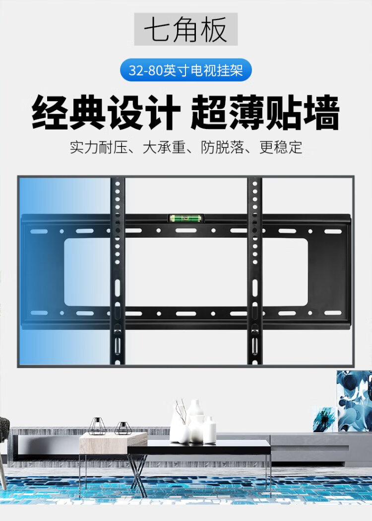Heptagonal plate TV bracket 32-80 inches universal TV bracket enlarged and thickened fixed LCD TV wall-mounted shelf suitable for Hisense Skyworth Sony LeTV Konka TCL