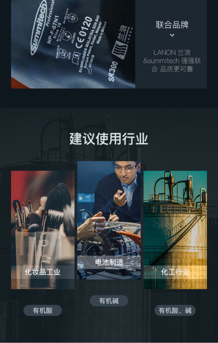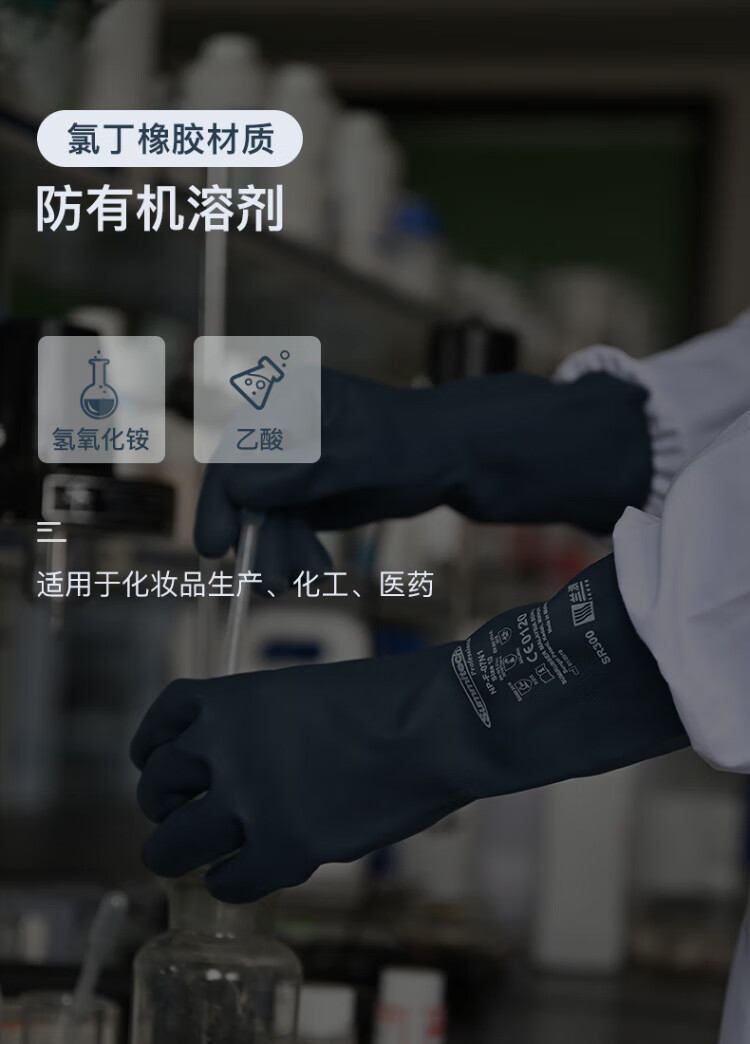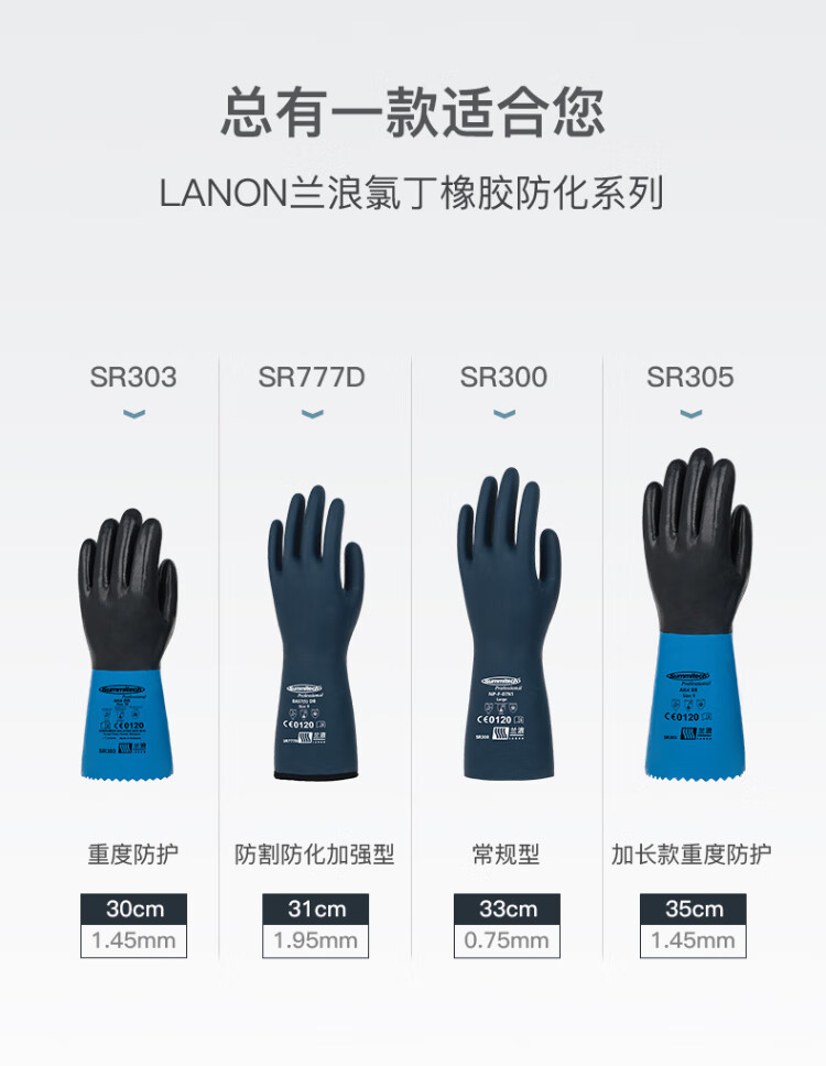 Lanlang SR300 imported neoprene chemical resistant gloves, organic solvent resistant, acid and alkali resistant, industrial laboratory labor protection M