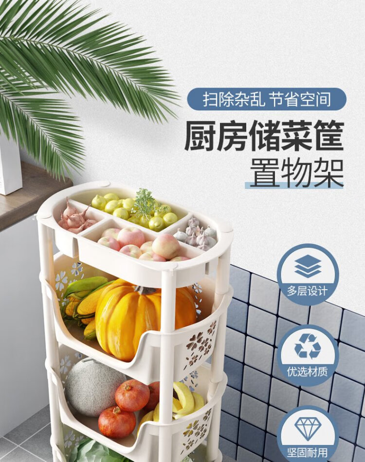 Leaijia kitchen rack fruit and vegetable storage rack floor-to-ceiling rack multi-layer storage rack household reinforced vegetable basket