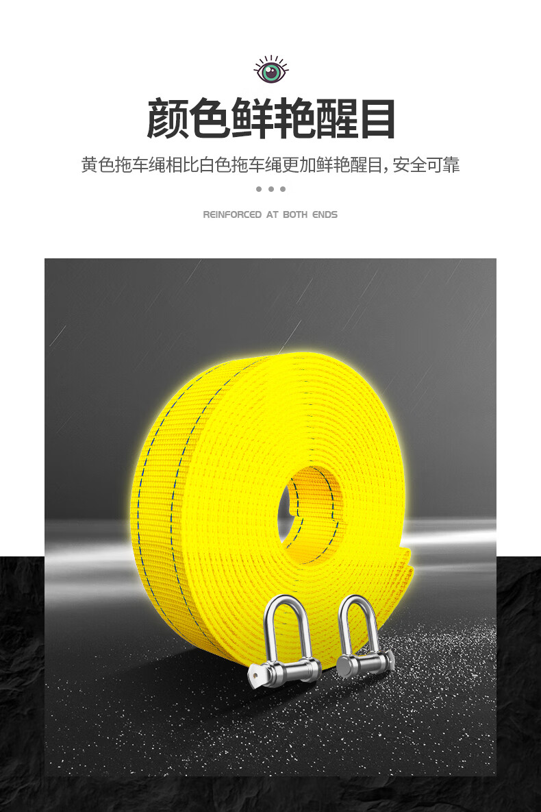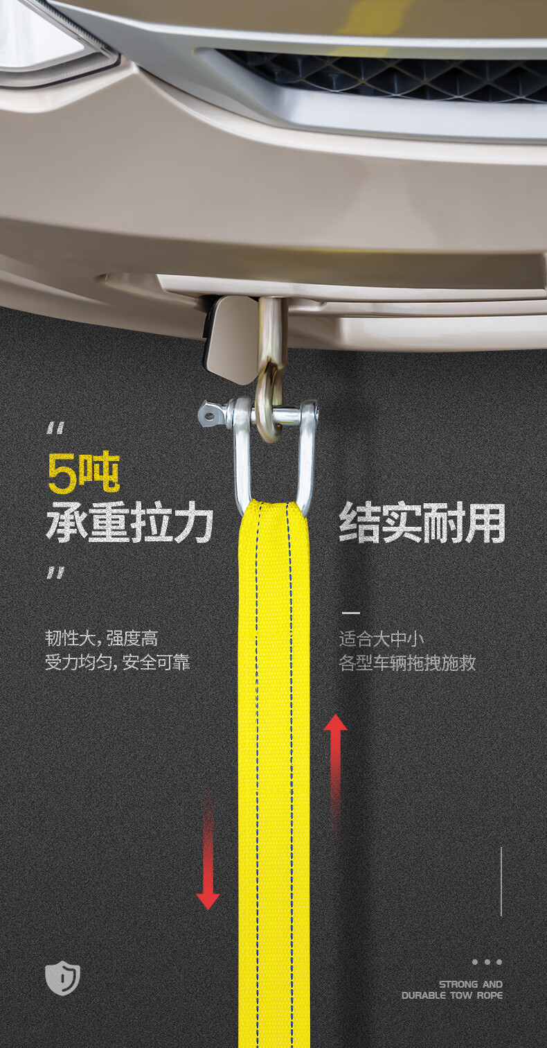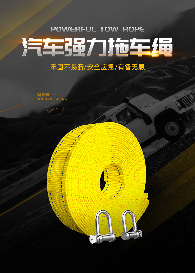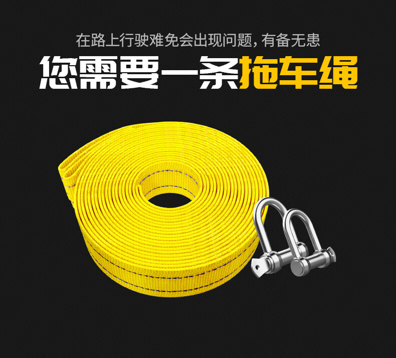 Huangchi car tow rope 5 meters 5 tons trailer with off-road traction rope strong pull rope rescue emergency pull car with steel hook
