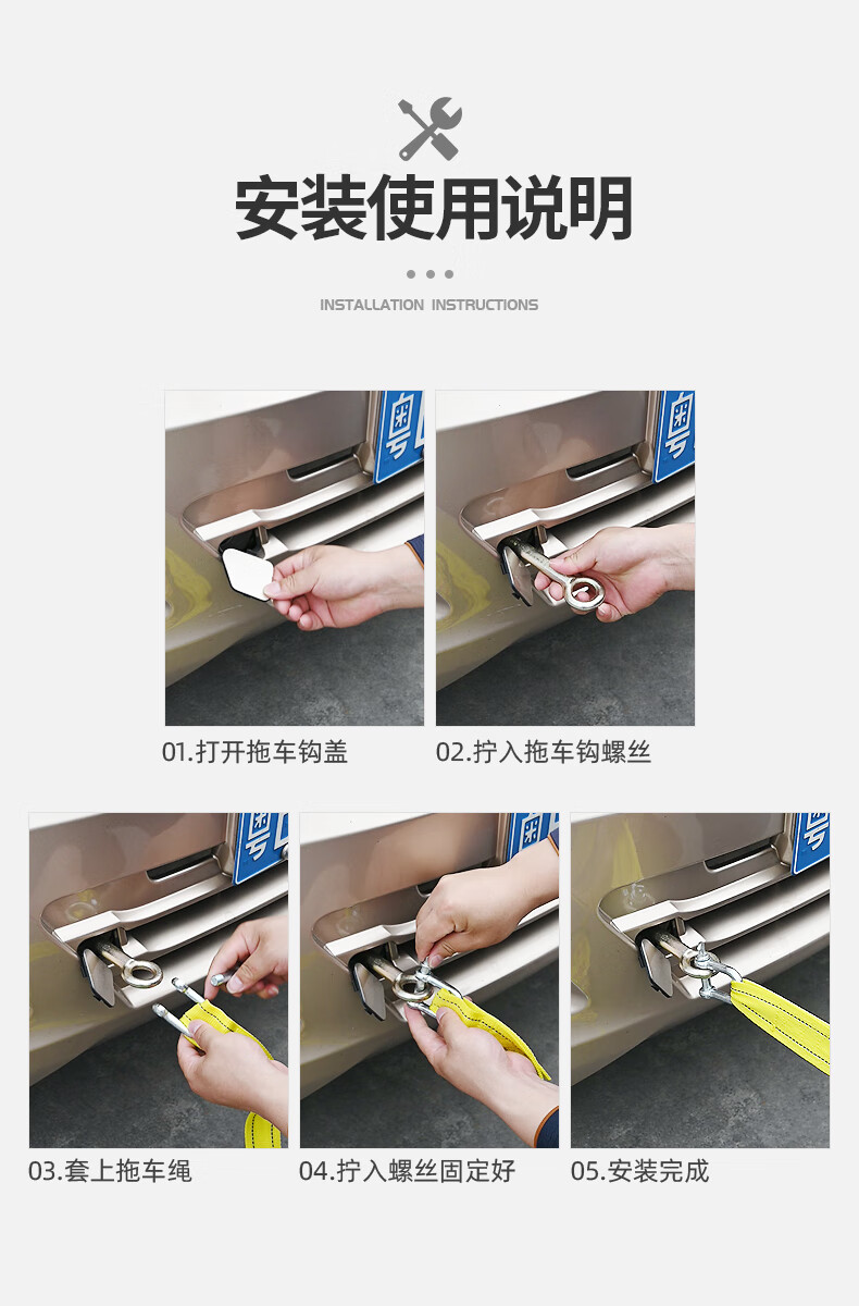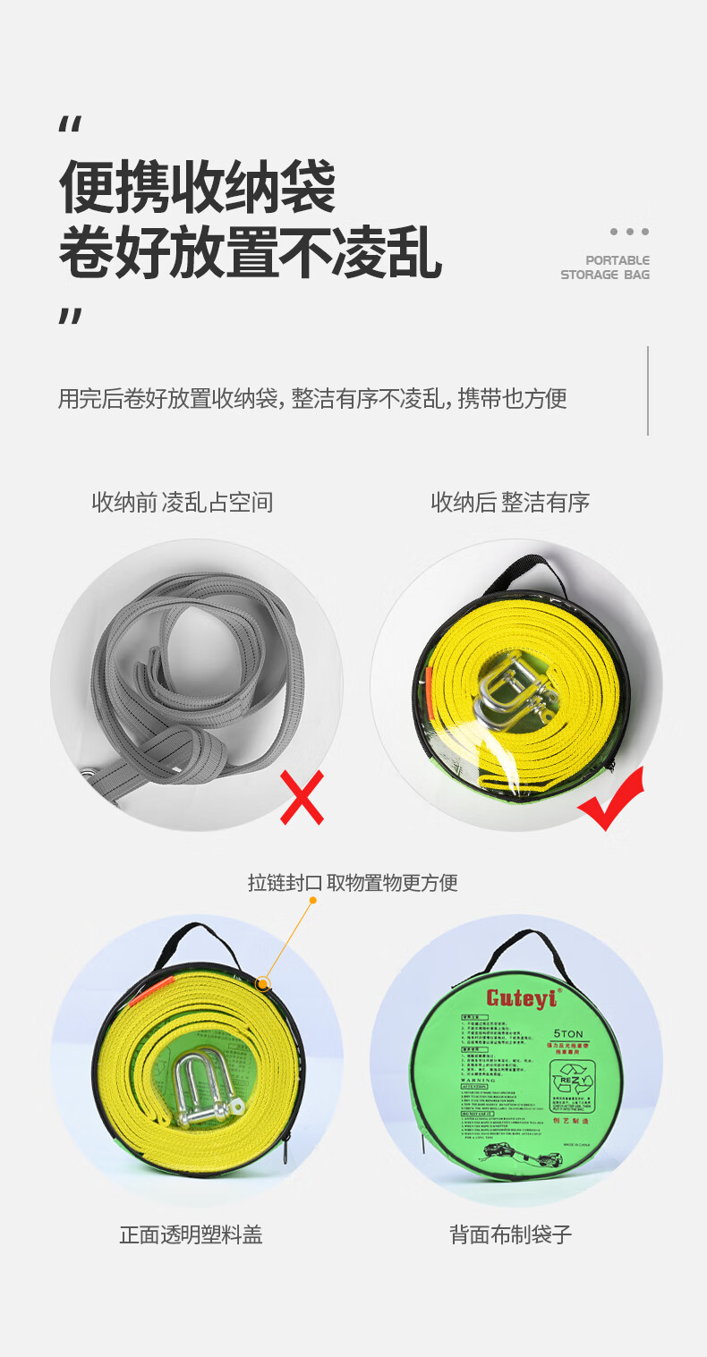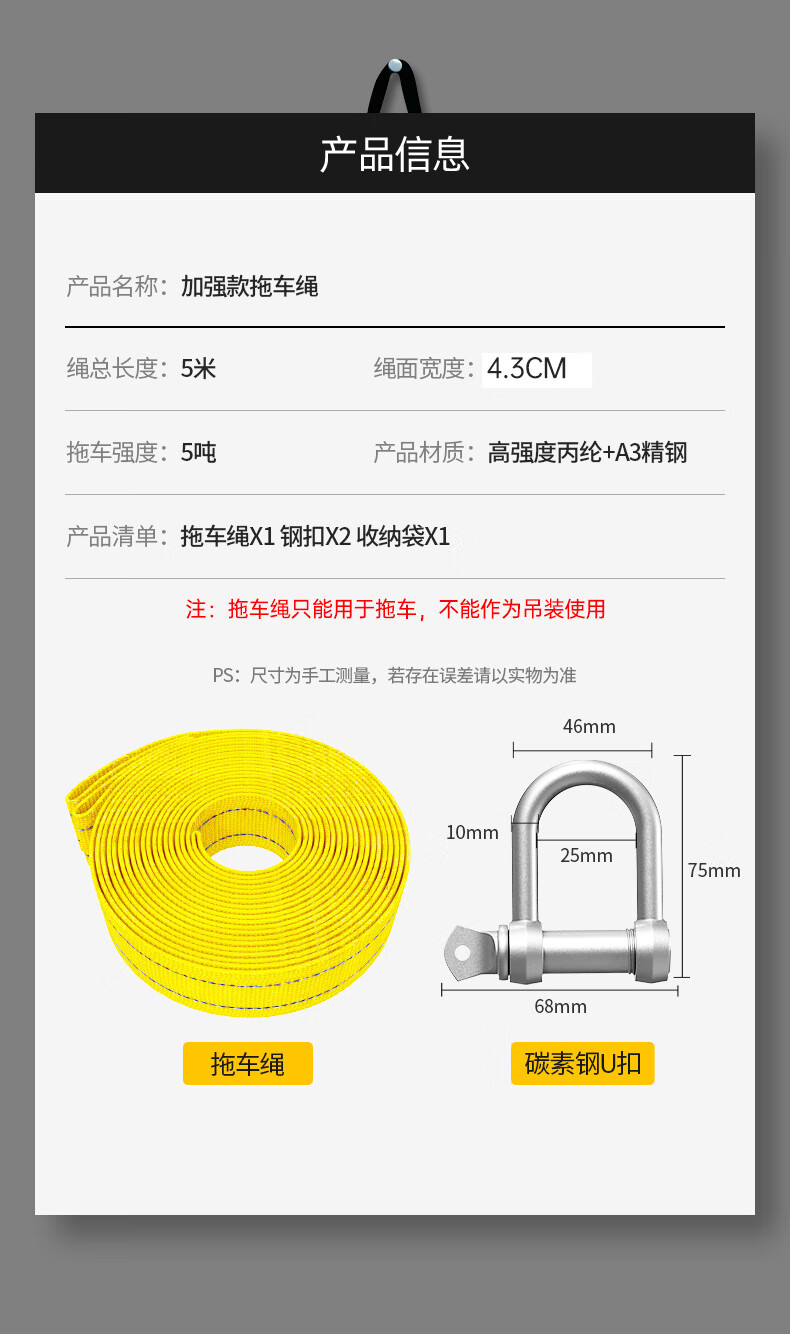 Huangchi car tow rope 5 meters 5 tons trailer with off-road traction rope strong pull rope rescue emergency pull car with steel hook
