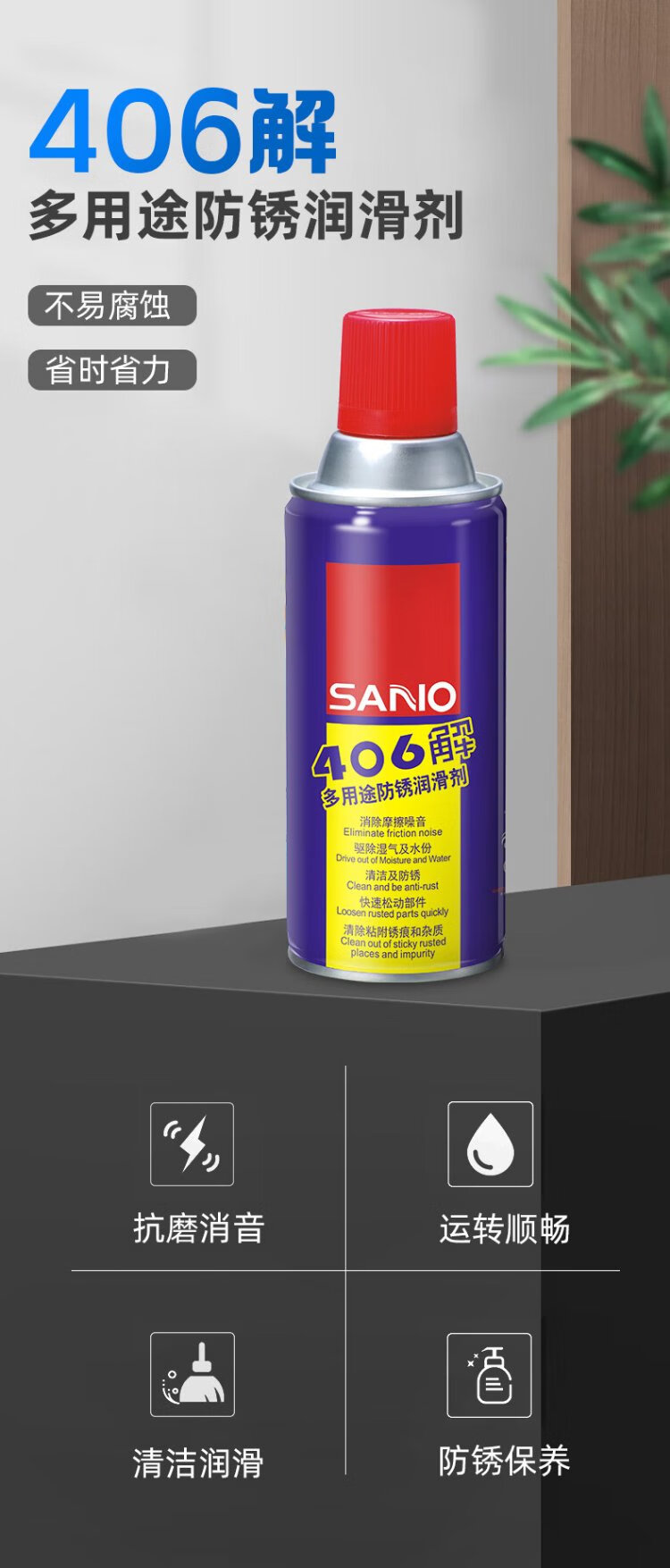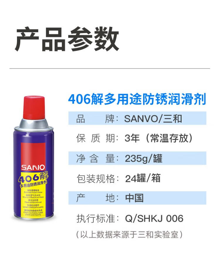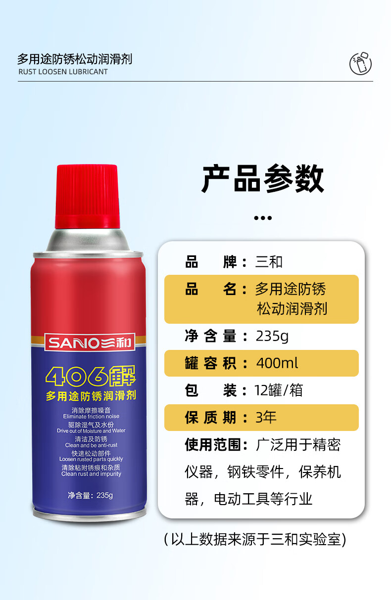 Sanhe Rust Remover Lubricant Screw Rust Remover Loose Agent Metal Mechanical Hinge Antirust Agent Lubricant Machinery 406 Solution 400ml