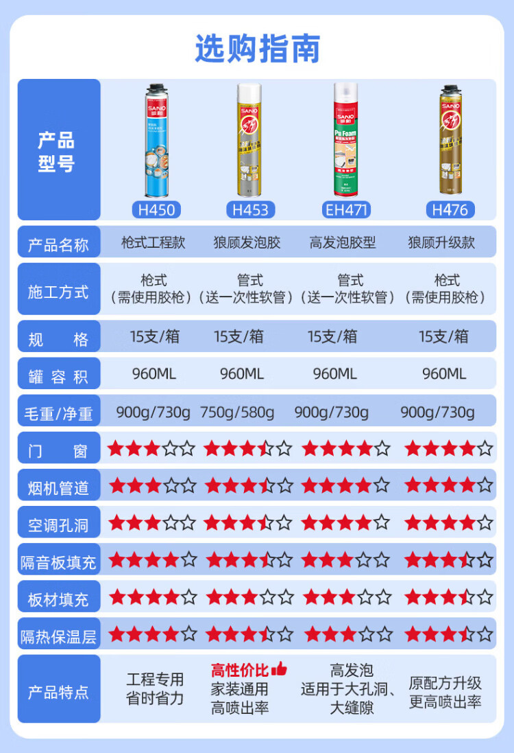 Sanhe foam glue caulking foam glue foaming agent caulking agent polyurethane waterproof sound insulation warm door and window installation wall hole gun barrel integrated H488