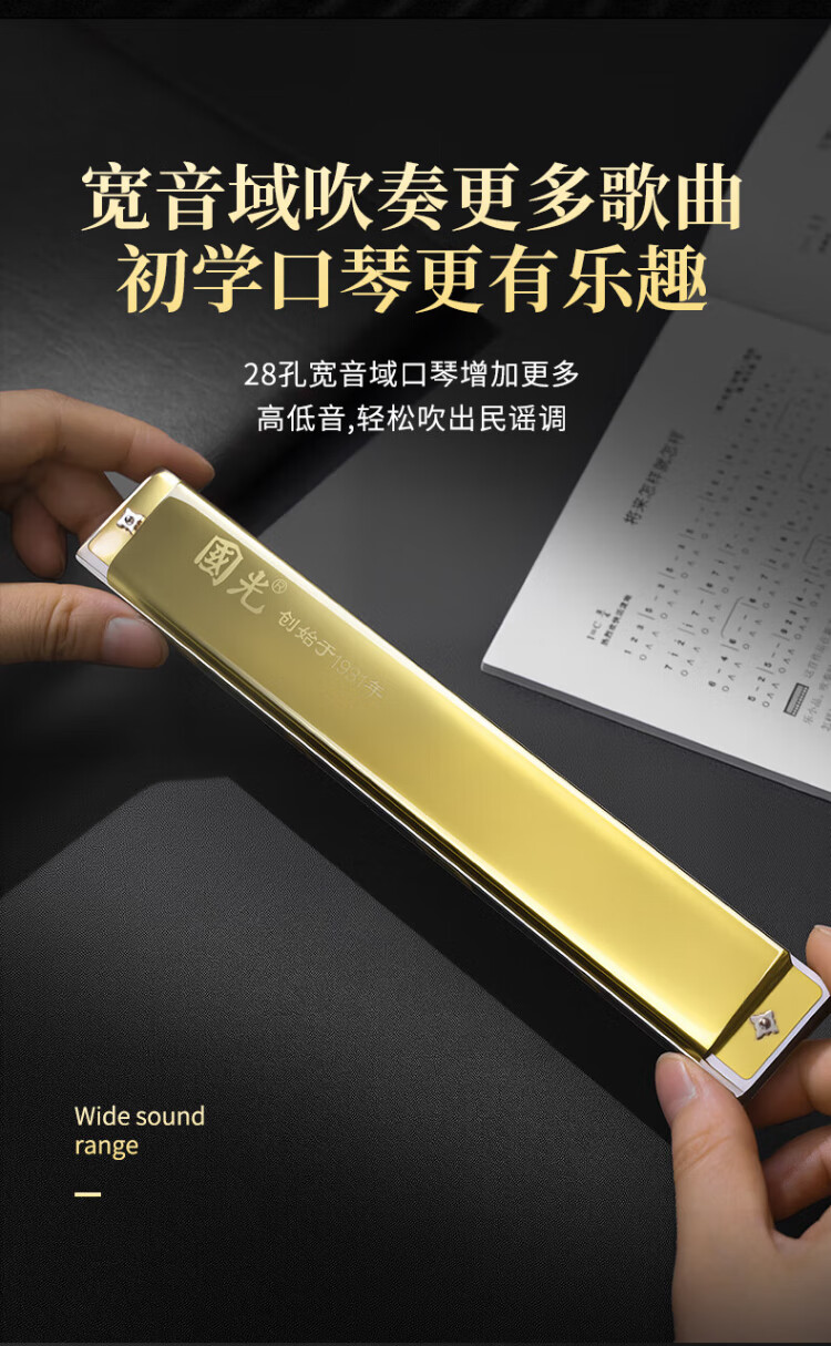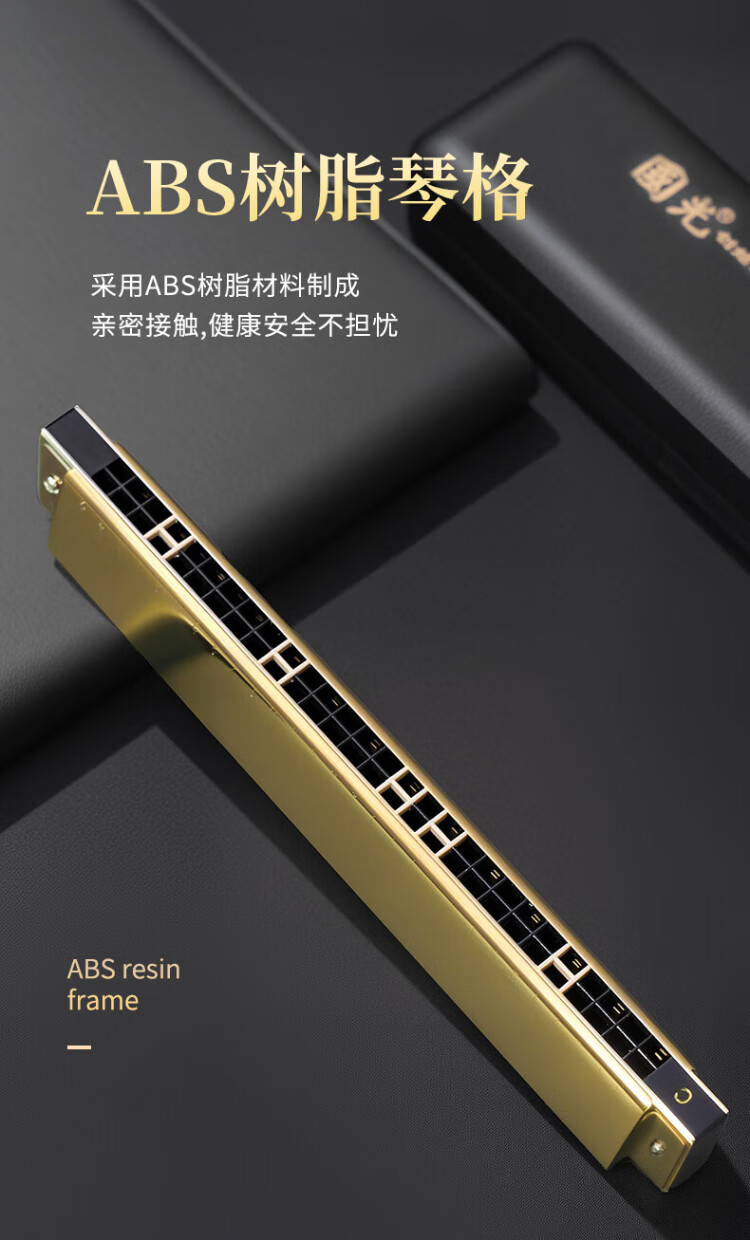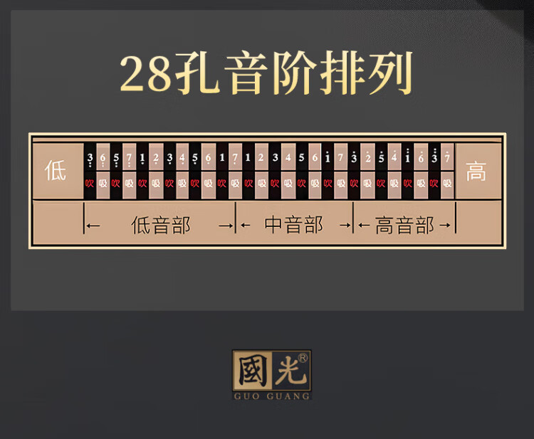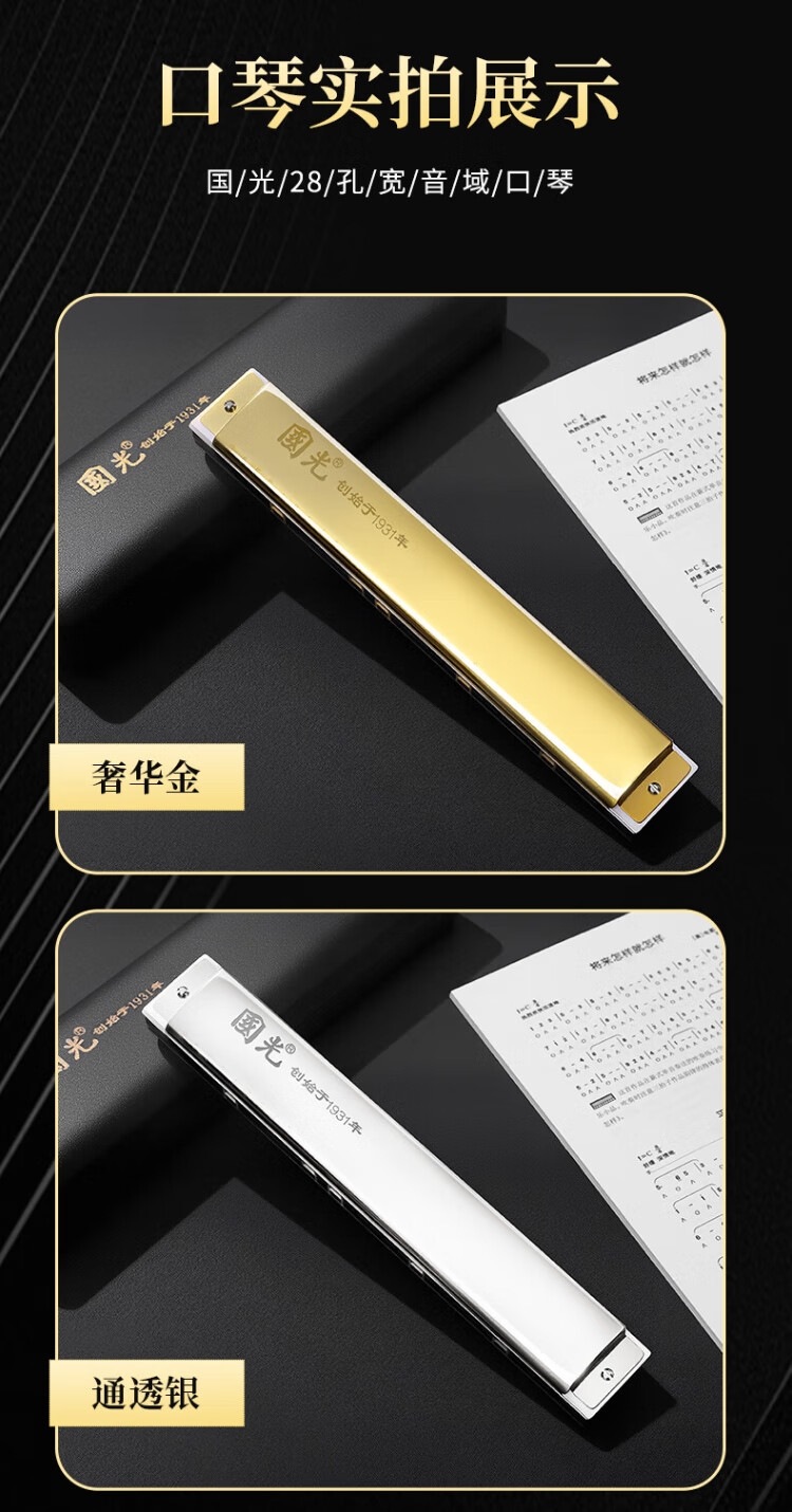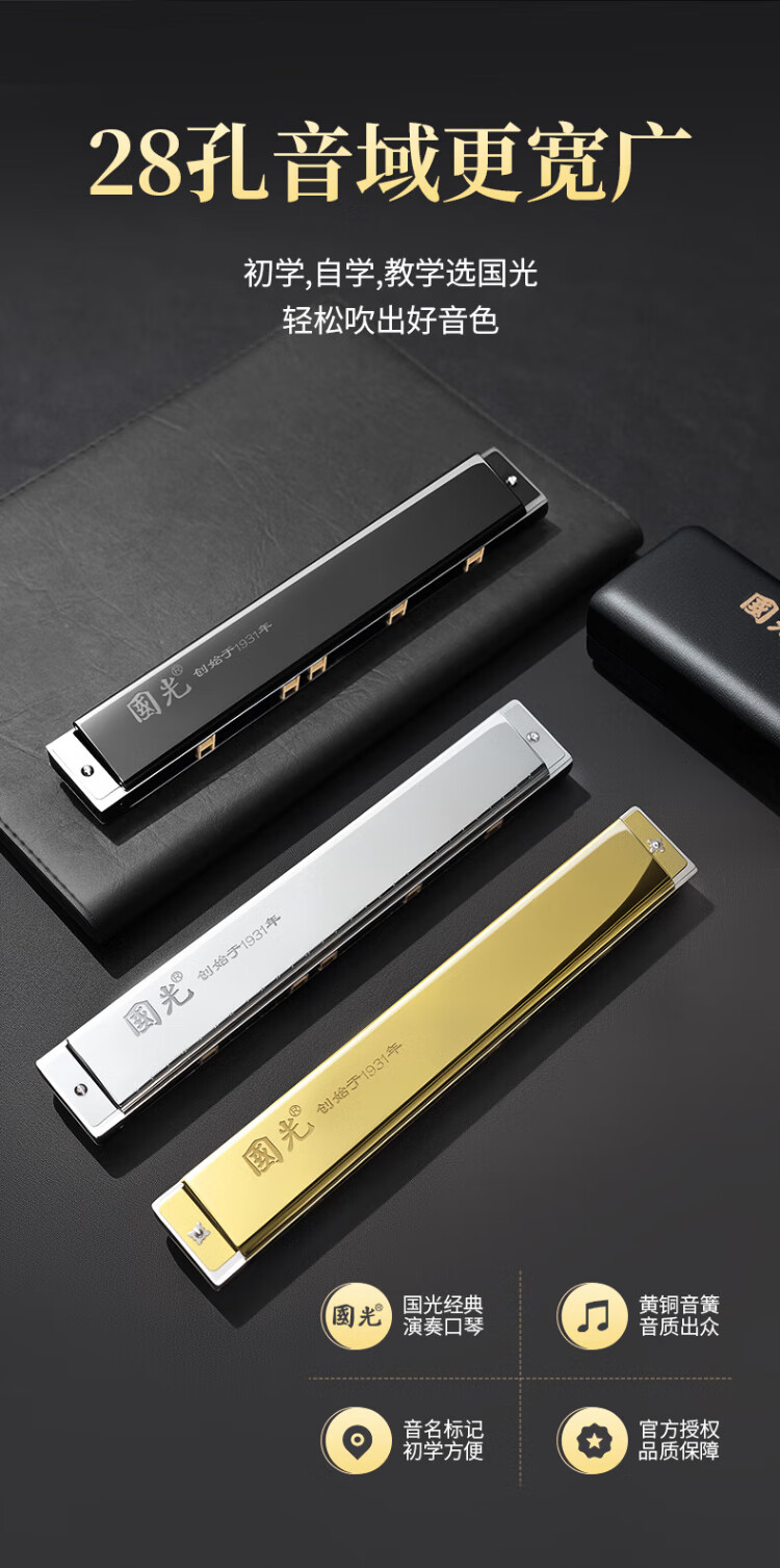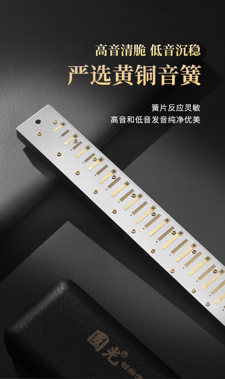 Guoguang 28-hole wide-range harmonica with scale accent in C (silver, resin box)