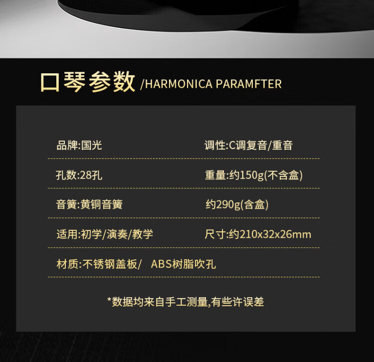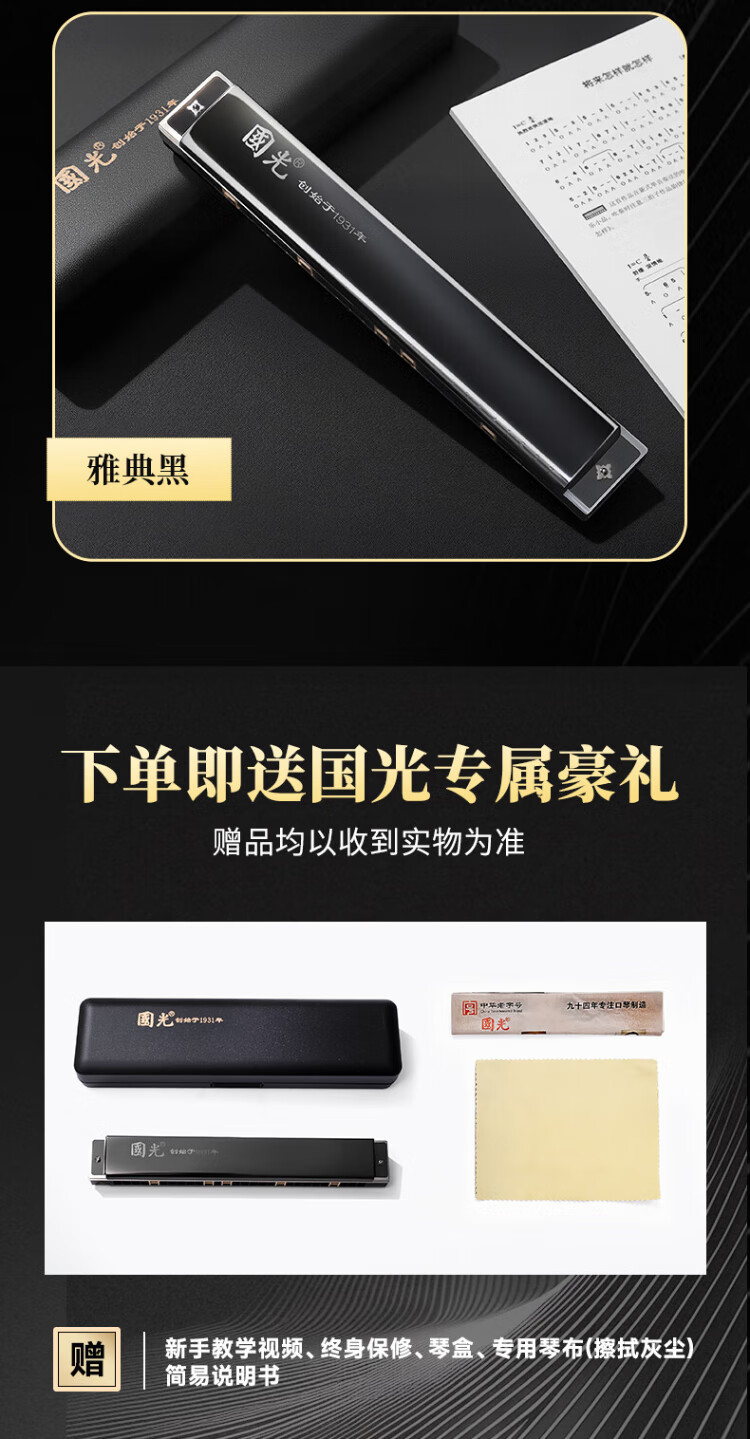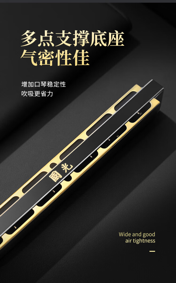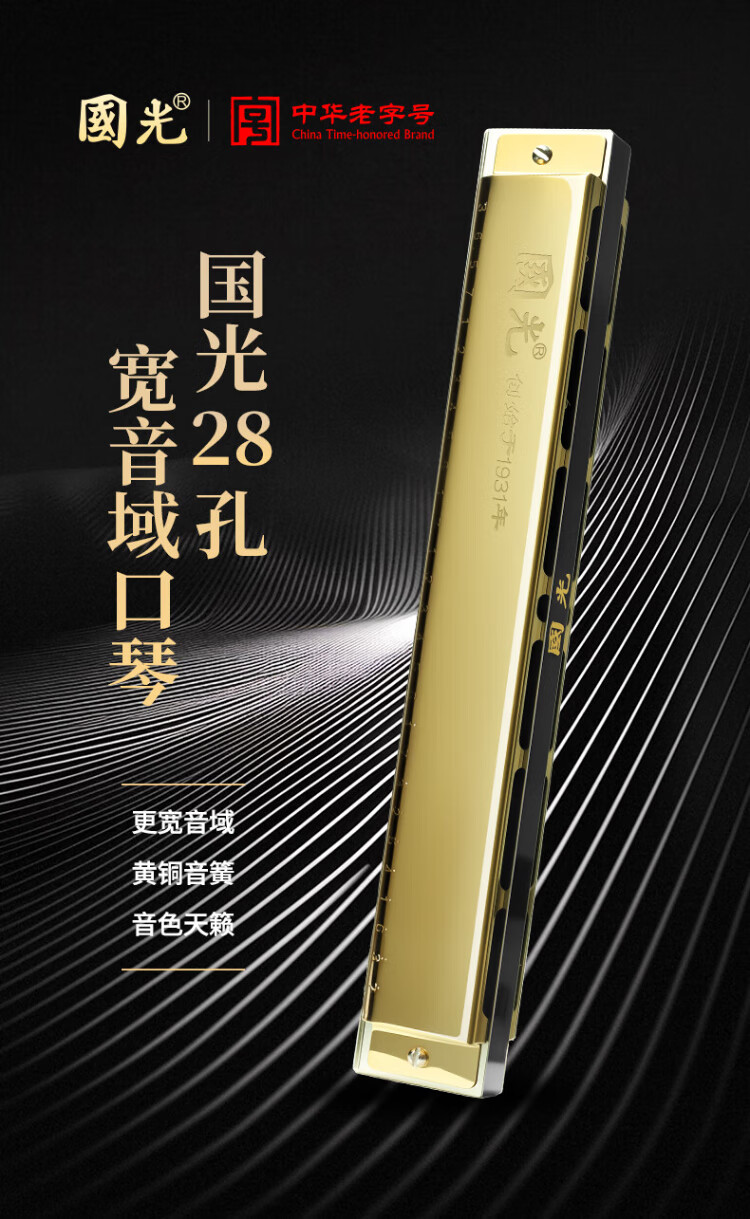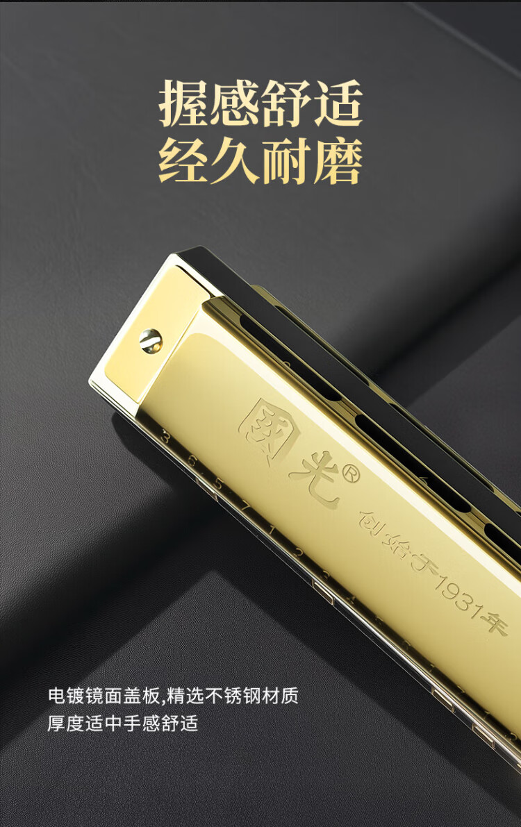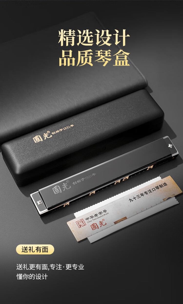 Guoguang 28-hole wide-range harmonica with scale accent in C (silver, resin box)