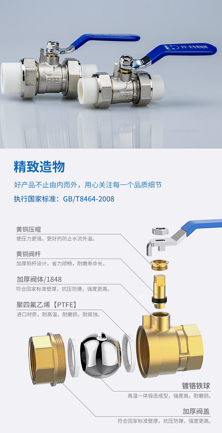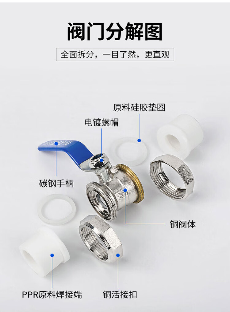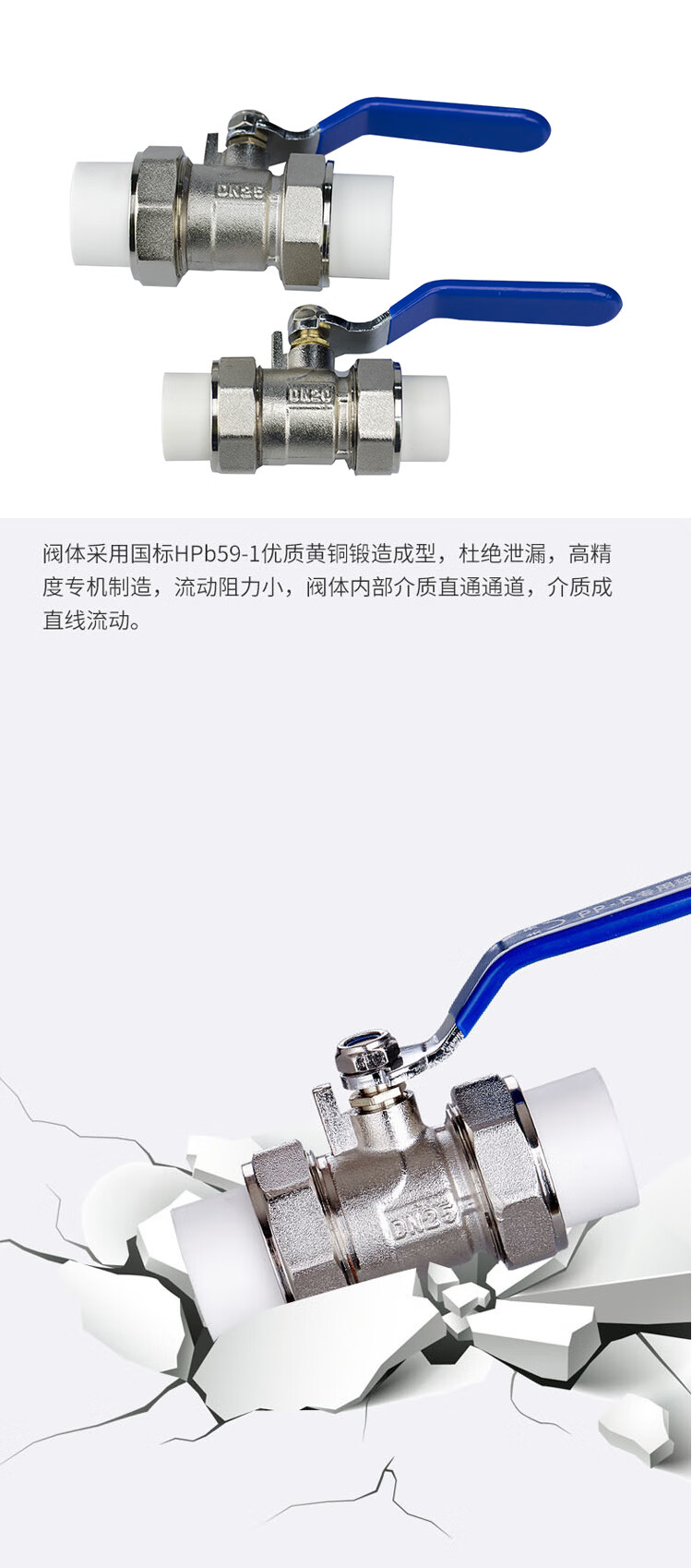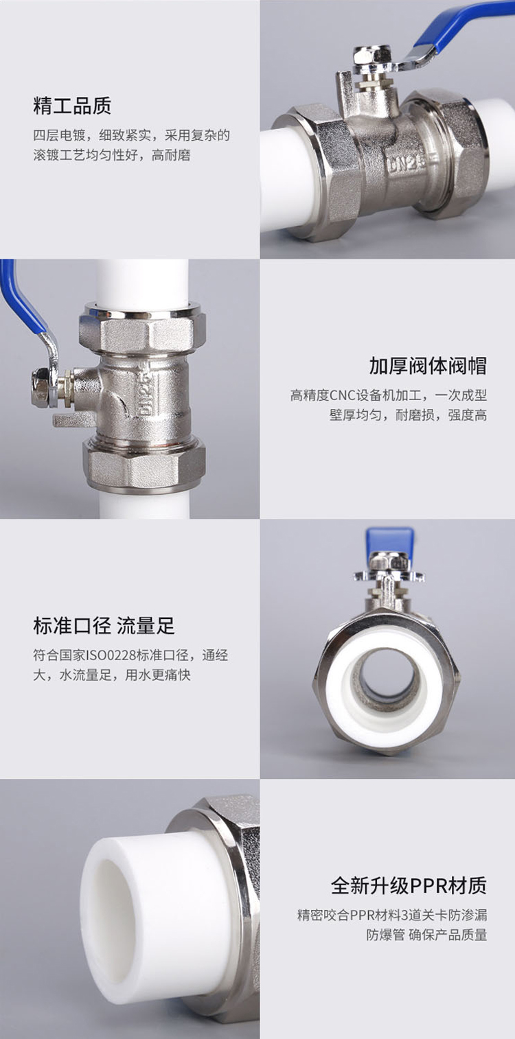 Hasdick HK-5004 National standard thickened double union hot melt manual ball valve electroplated PPR brass nickel plated ball valve DN25