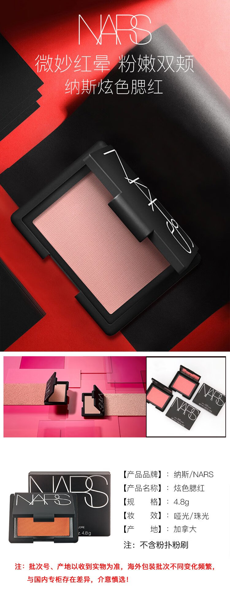 NARS Nas/Nas dazzling color blush rouge #TAJMAHAL4.8g Taj Mahal micro-gold glitter 27.3 due new year's goods