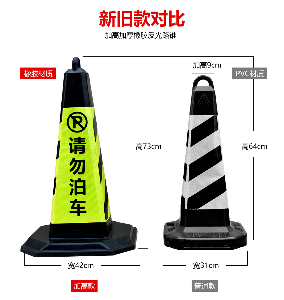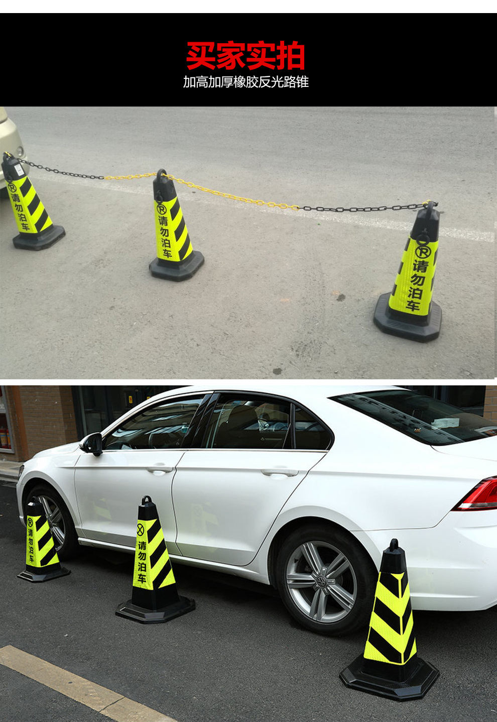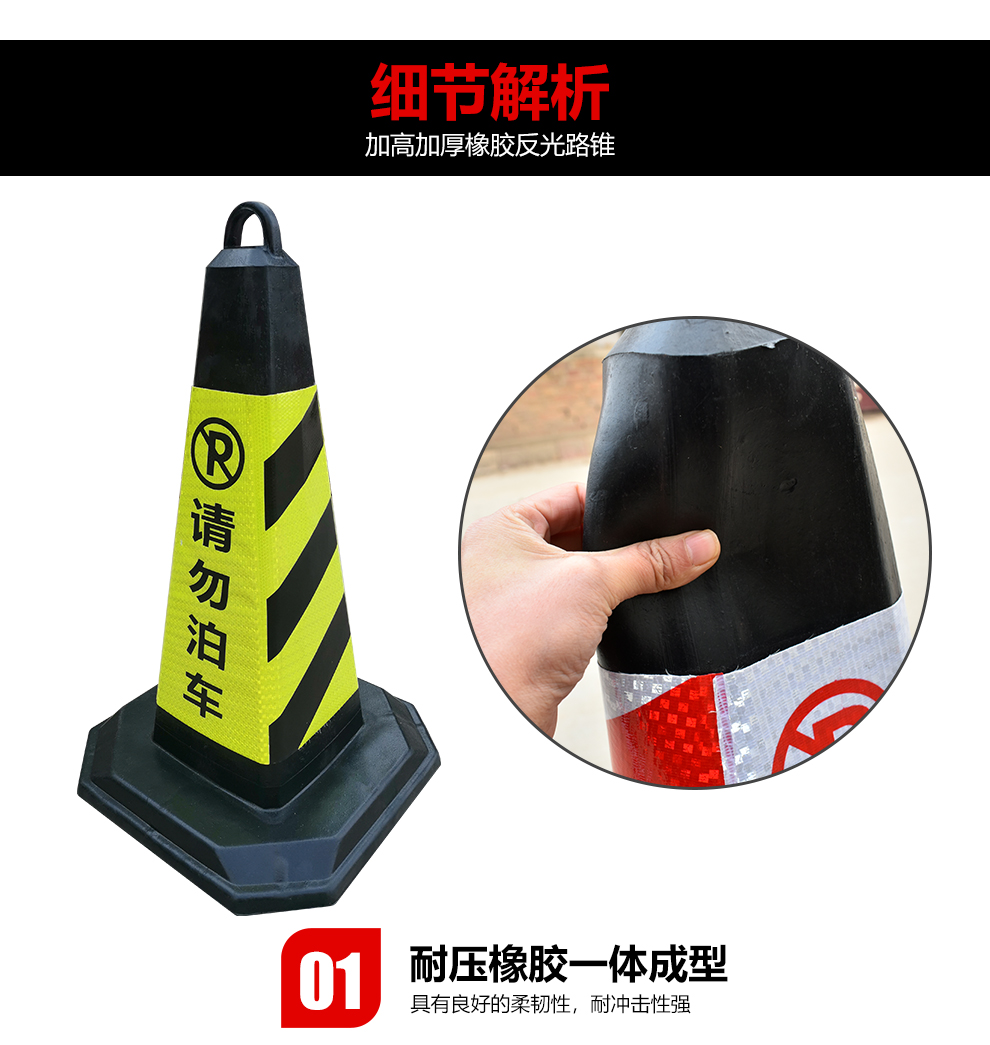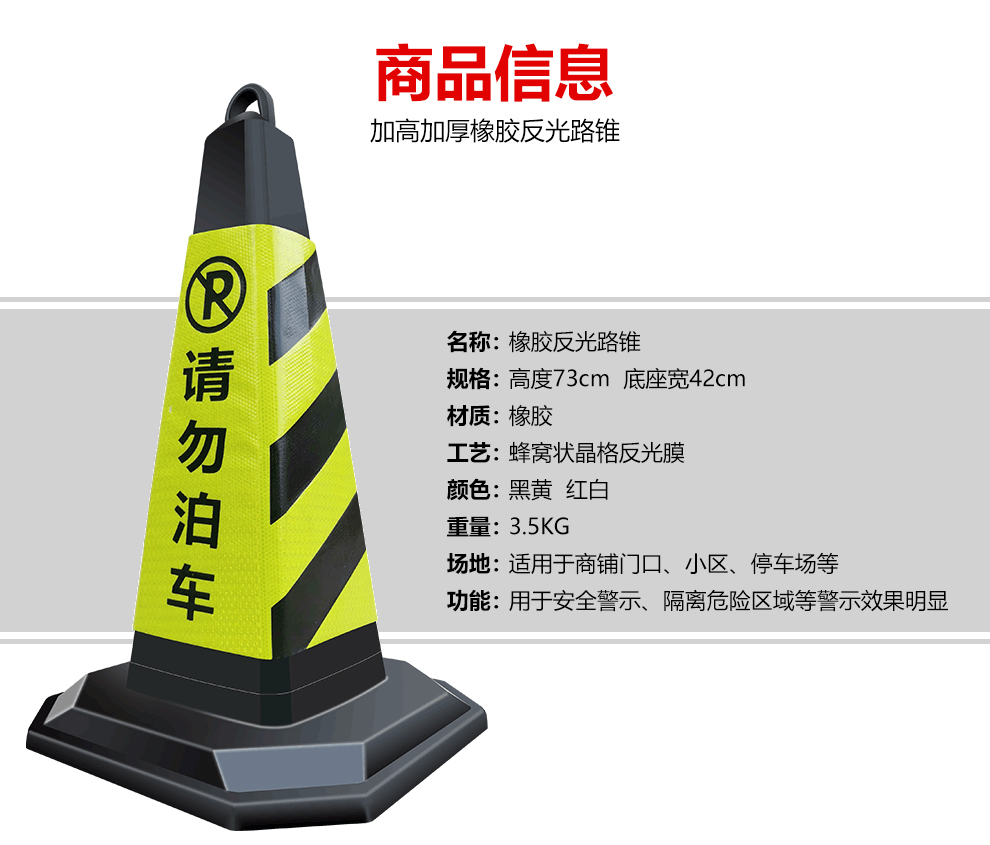 Qilu Anran Reflective Road Cone Plastic Rubber Square Cone Bucket Black and Yellow Do Not Park Isolation Pillar No Parking Sign Reflective Road Block Warning Post Occupies Parking Space Ice Cream Cone 7 catties