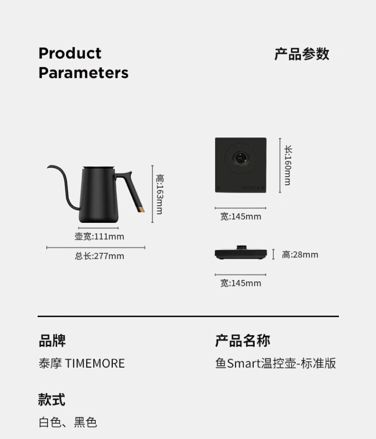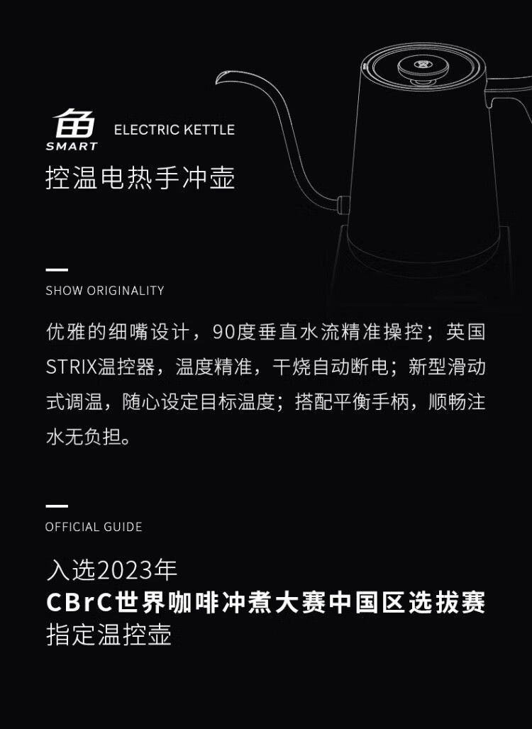 Taimo Fish smart temperature-controlled hand brewing kettle household temperature-controlled electric kettle thin mouth hand brewing coffee pot 600ML