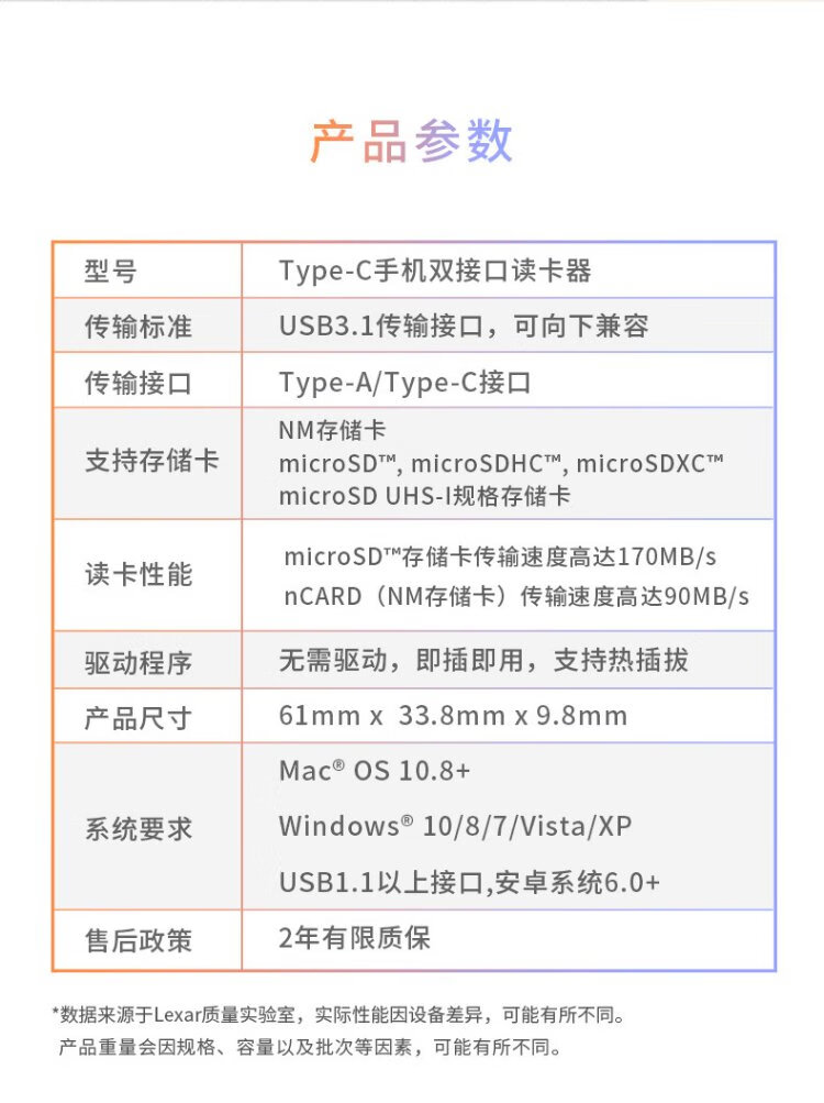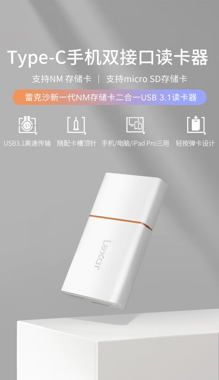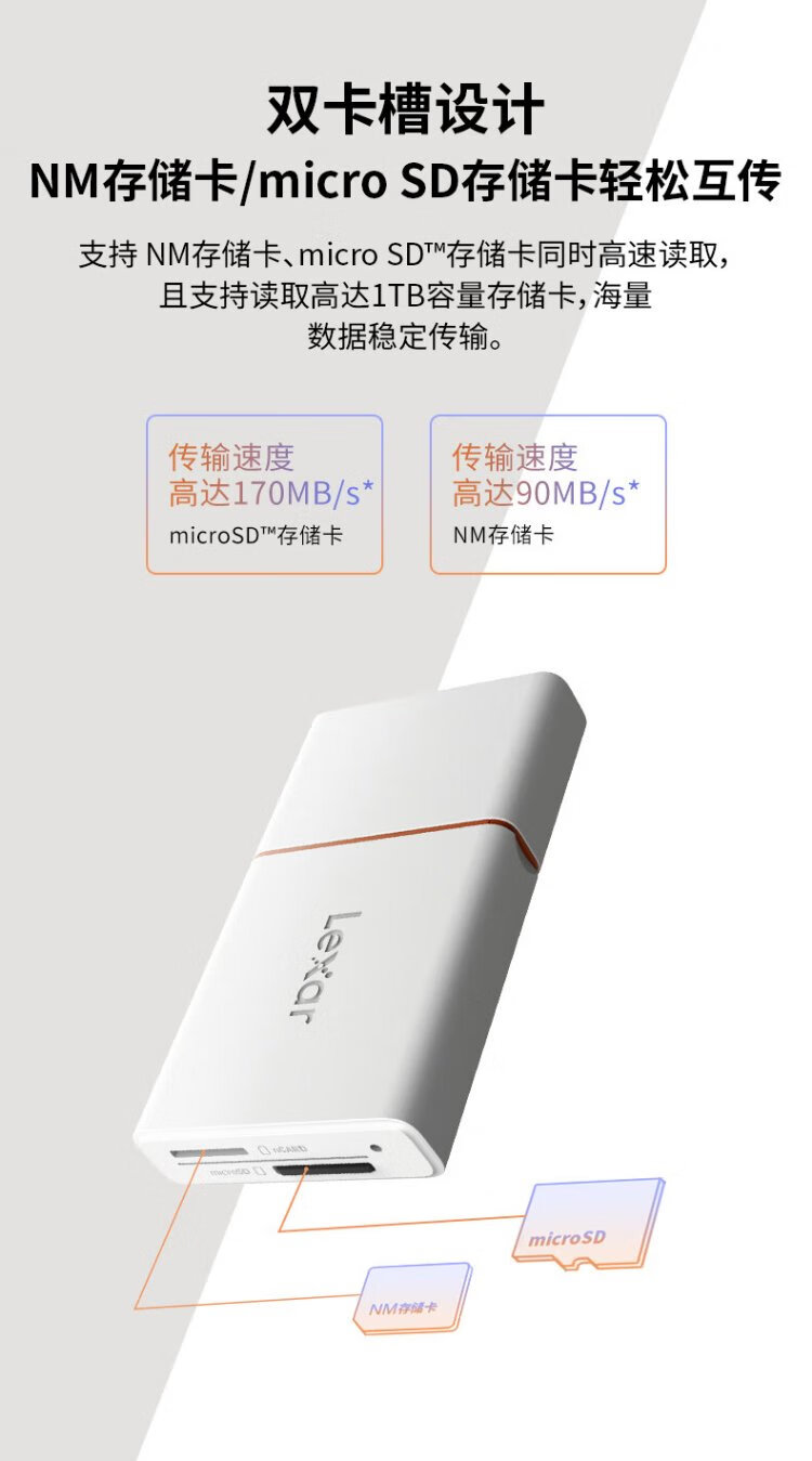 Lexar USB3.1 high-speed two-in-one card reader Huawei NM card reader NM card/TF card multi-function Type-C card pin included for easy mutual transfer