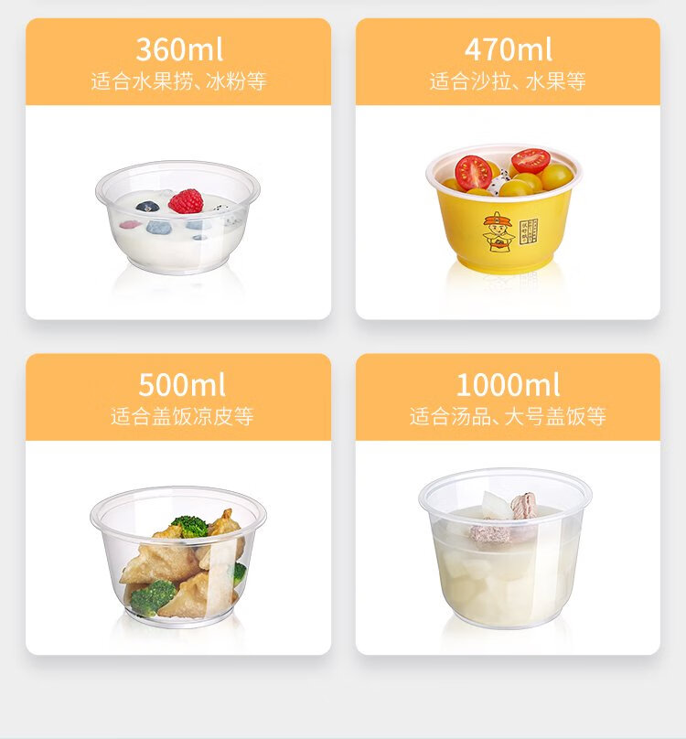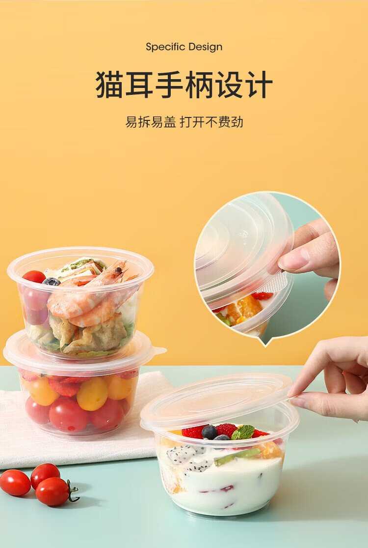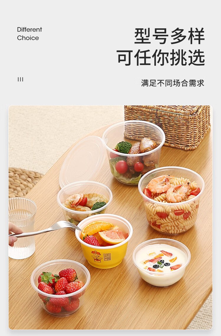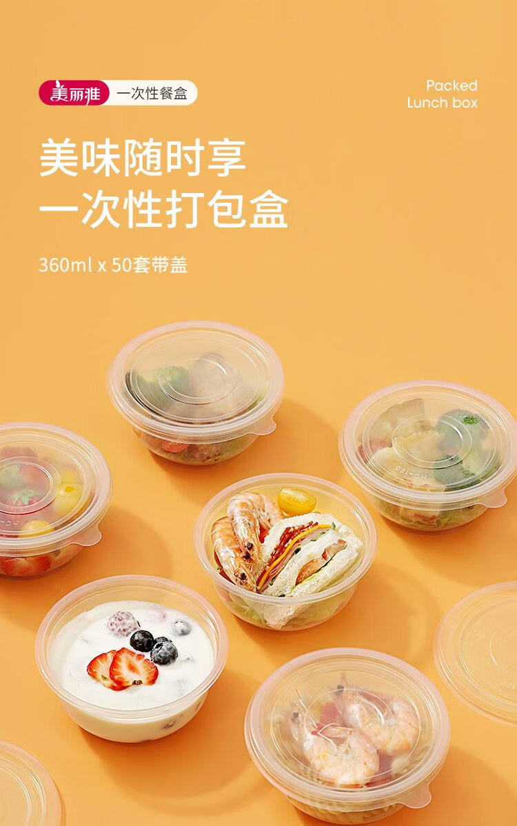Meiya Disposable Lunch Box Round 360ml*50 Sets Soup Bowl Sauce Packing Bowl Blister Sealed Thickened Transparent Cover