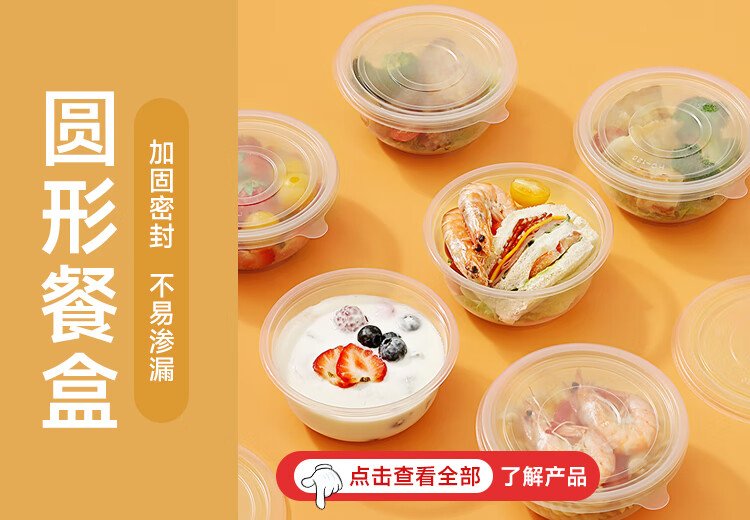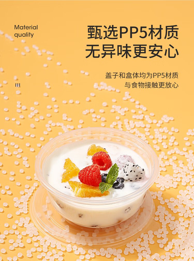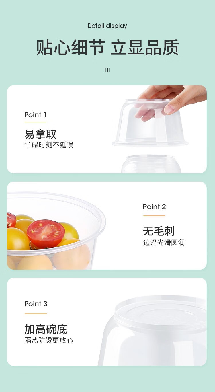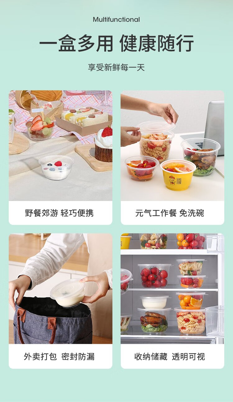 Meiya Disposable Lunch Box Round 360ml*50 Sets Soup Bowl Sauce Packing Bowl Blister Sealed Thickened Transparent Cover