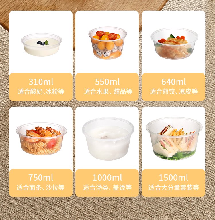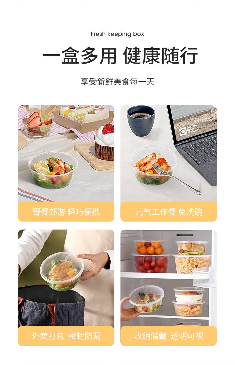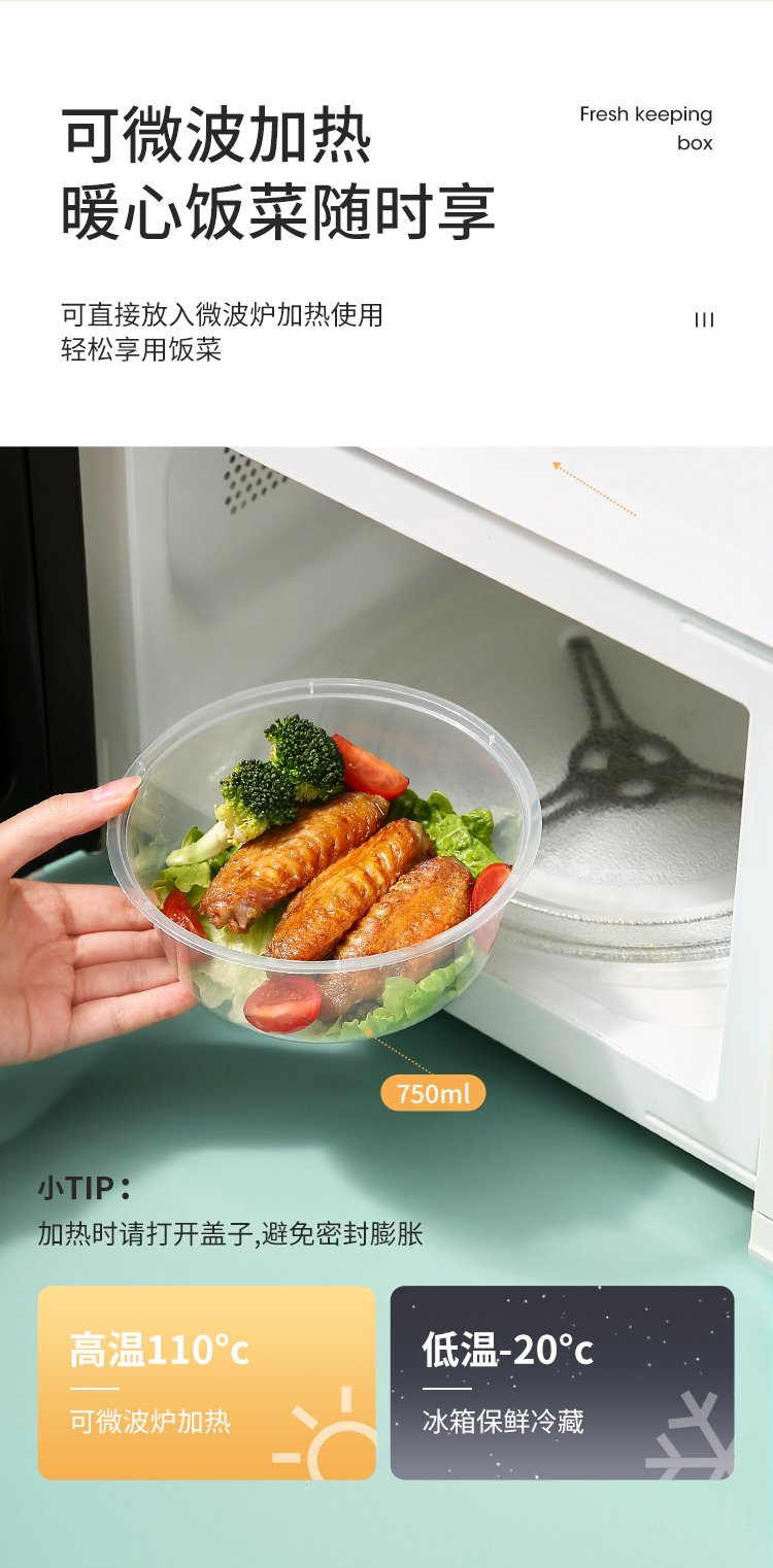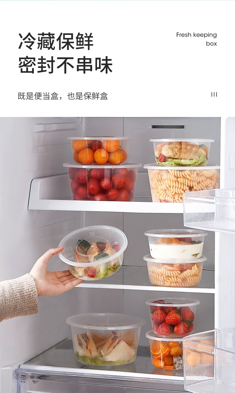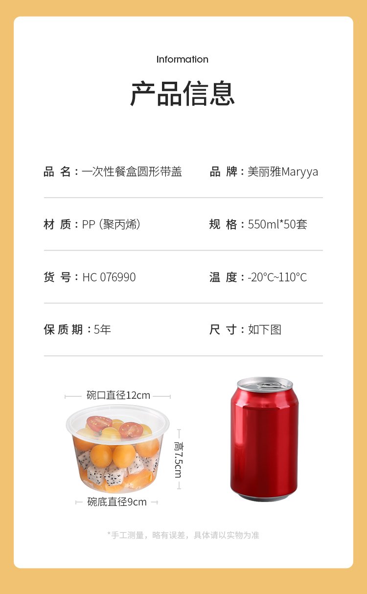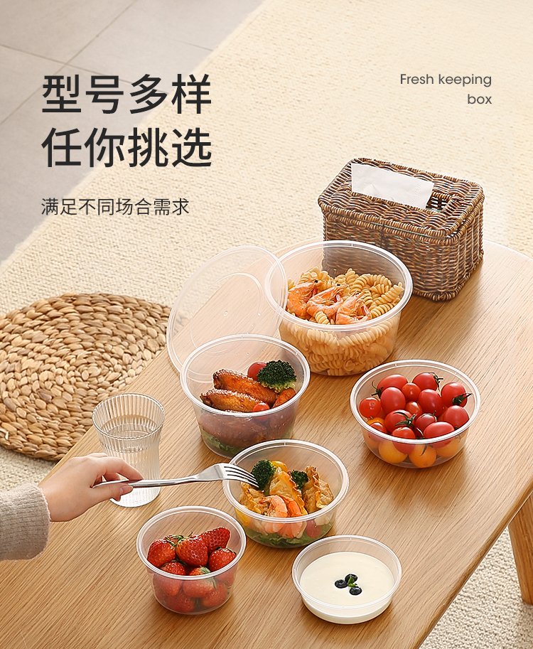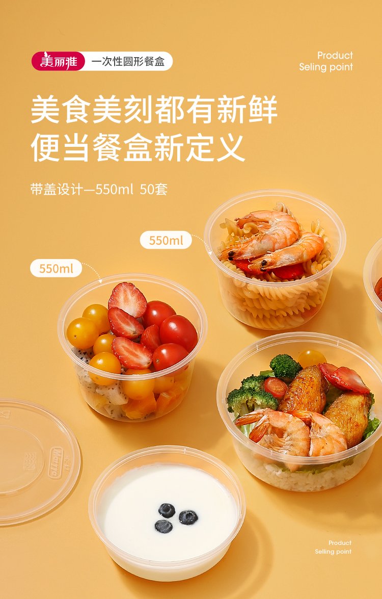 Meiya disposable lunch box round 550ml*50 set food-grade fast food packaging box bowl plastic with lid microwaveable
