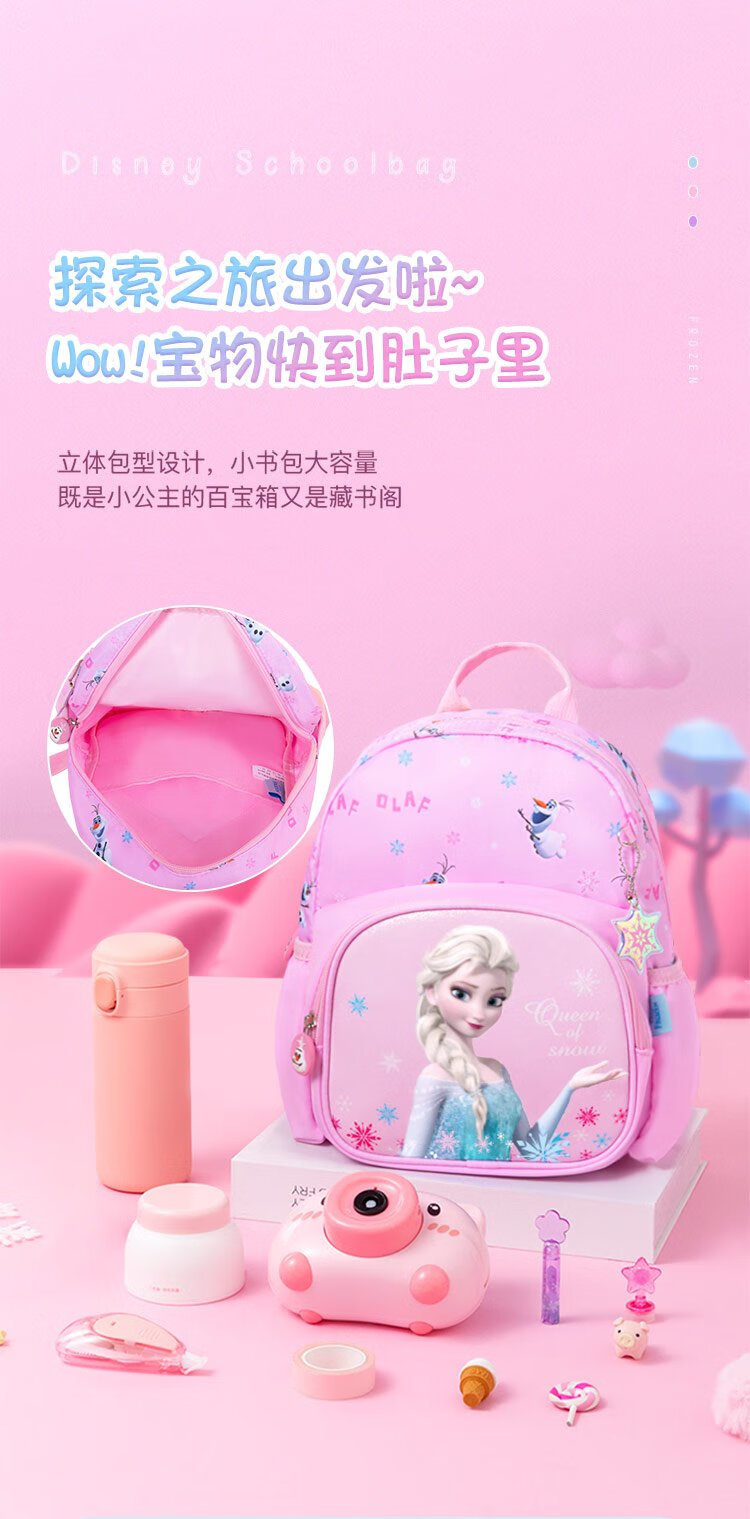 Disney (Disney) children's schoolbag kindergarten 3-6 years old small class and upper class ultra-light and cute girl small backpack Elsa Princess Pink