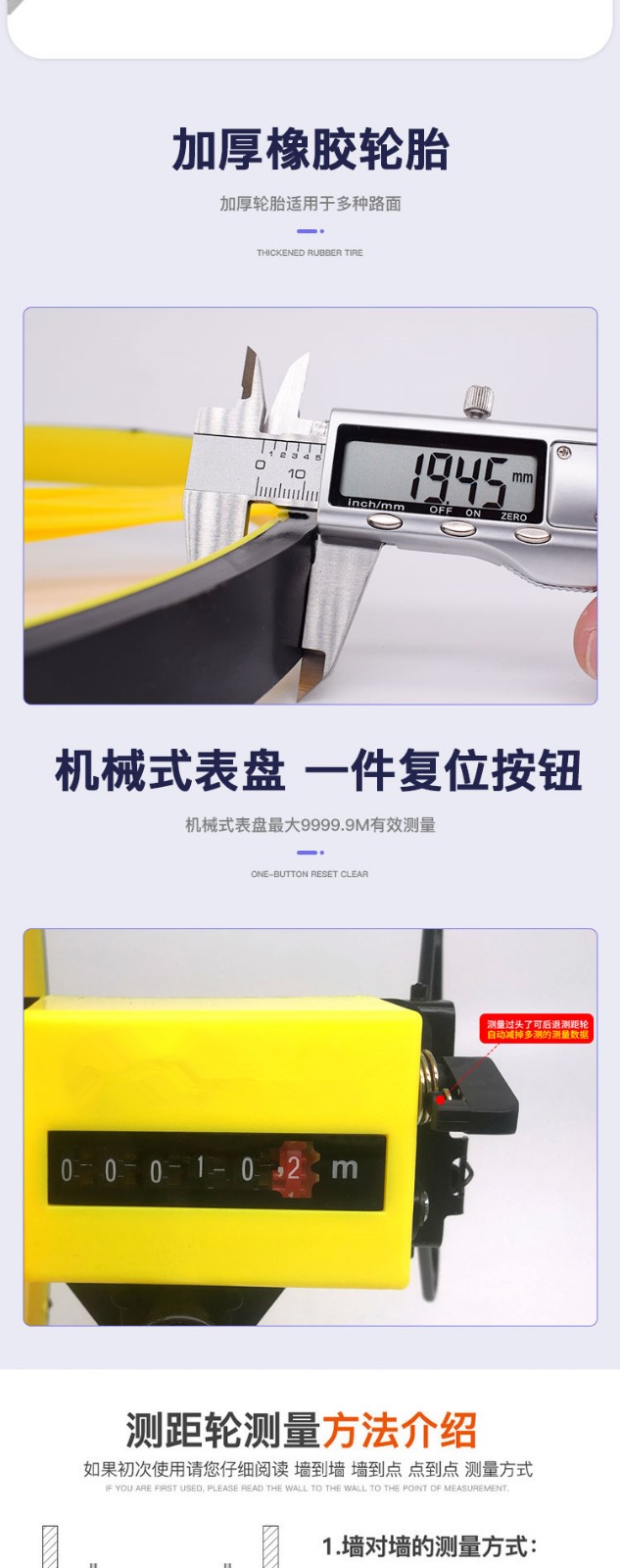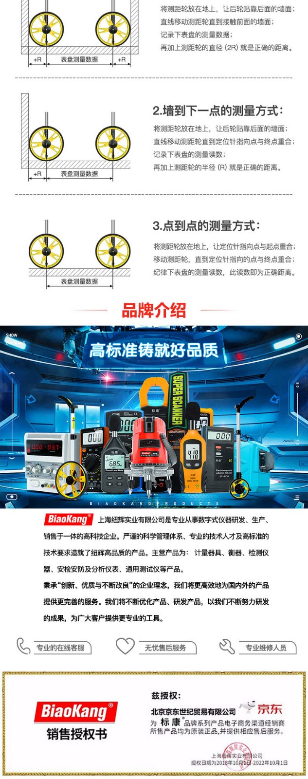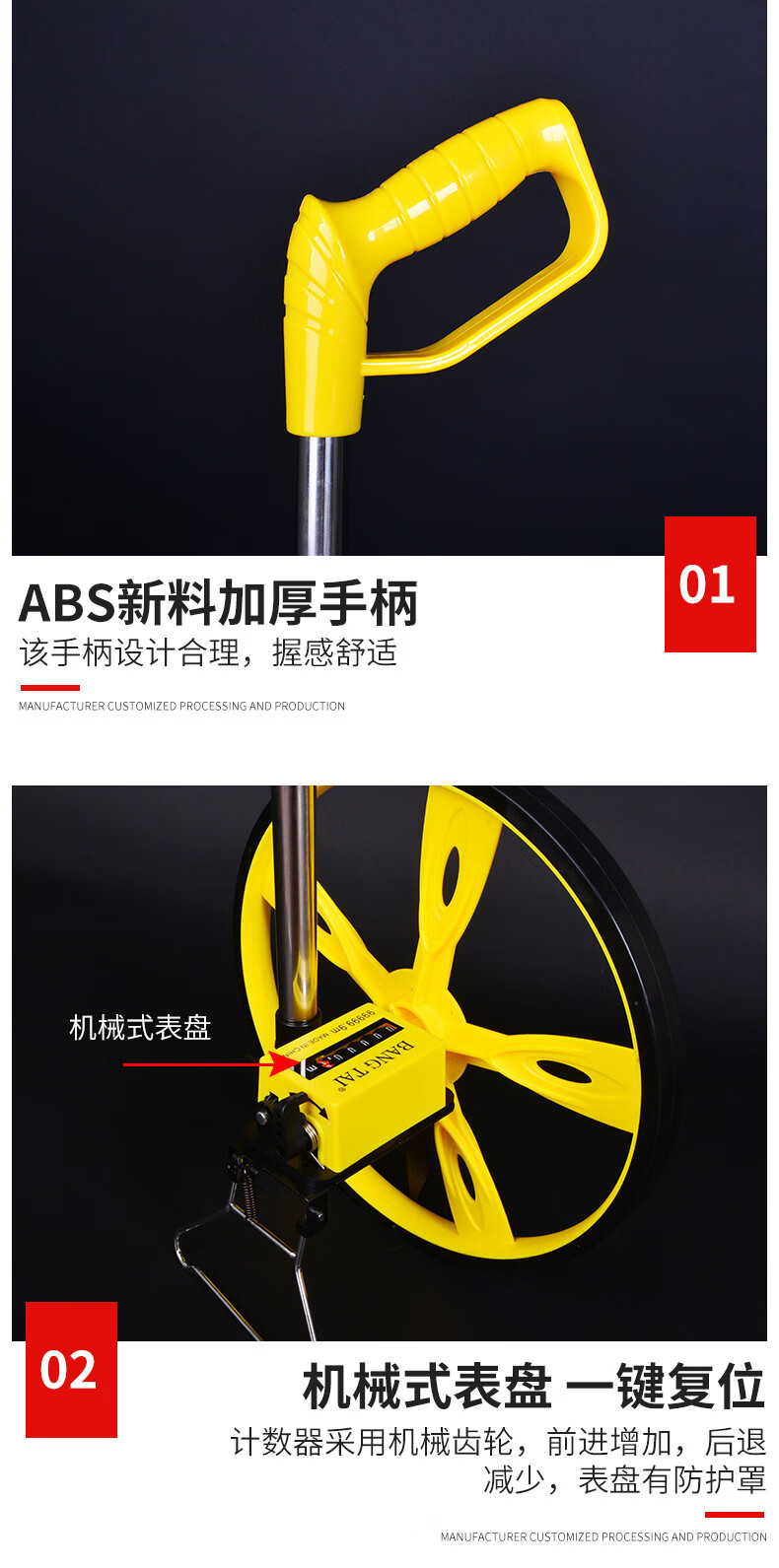 Biaokang mechanical distance measuring wheel hand-held roller distance meter counter measuring land area measurement acre measuring instrument large wheel