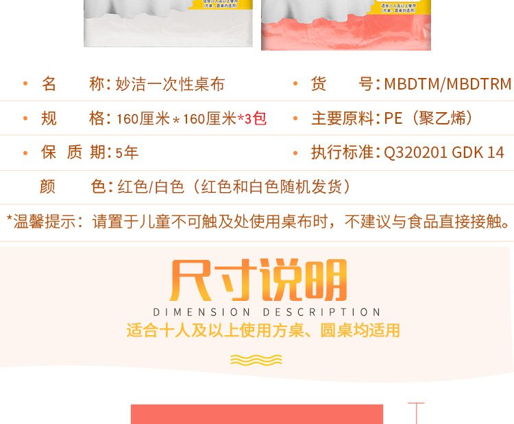 Miaojie Table Cloth Medium 3 Pack Combination Disposable Table Plastic Film Placemat Picnic Cloth