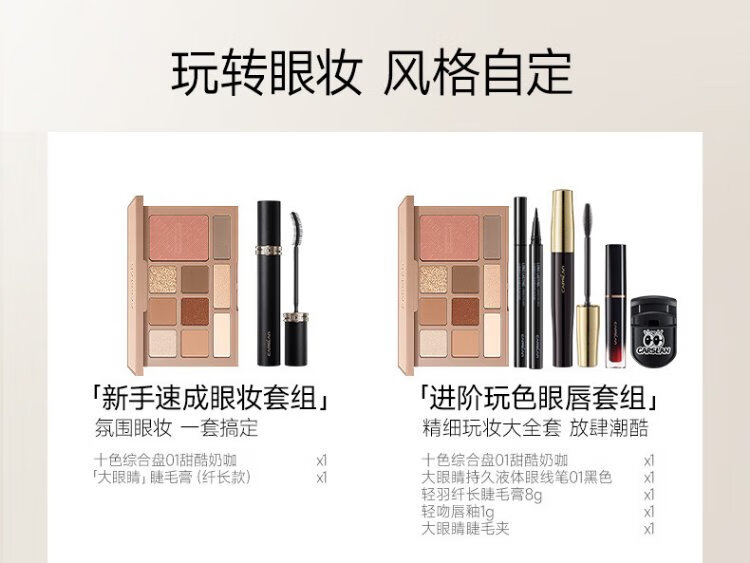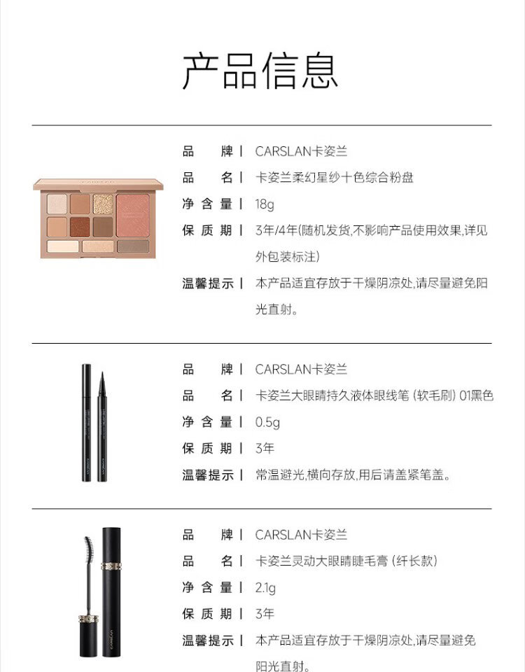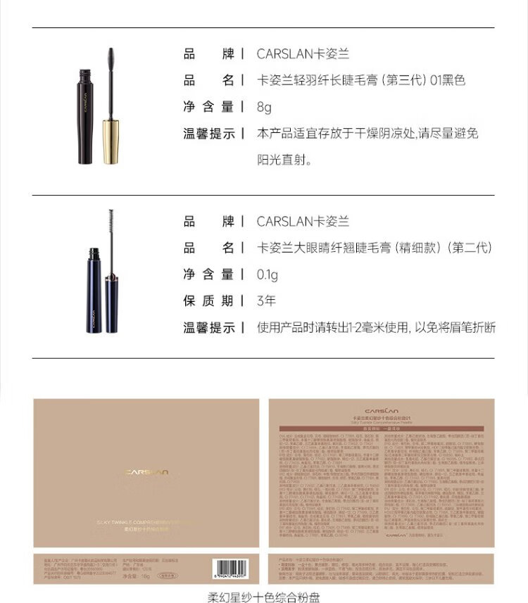 Carslan 3-piece eye makeup set (10-color eye shadow 01 + eyeliner 2.1g + mascara 8g) New Year gift for girlfriend