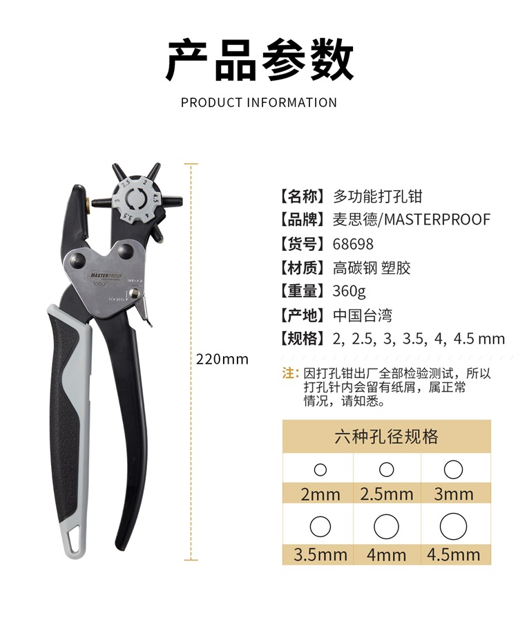 MASTERPROOF original imported belt belt punch universal eye punch home professional super labor-saving manual punch