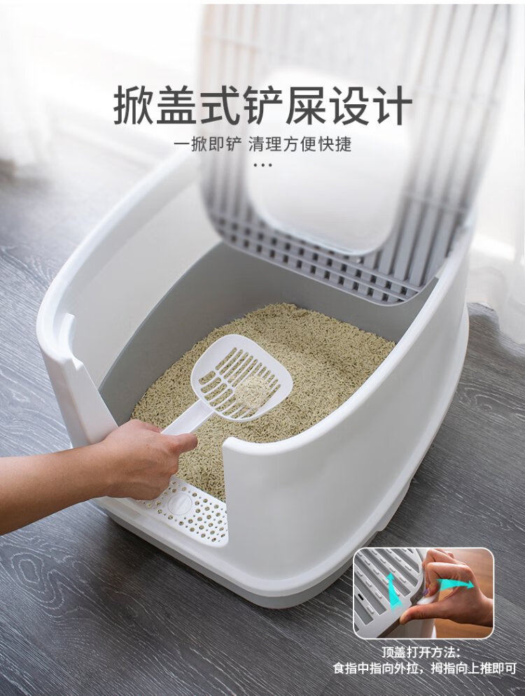 Leyoupai cat litter box fully enclosed anti-splash cat toilet cat poop box cat litter box cat litter box gray and white small size