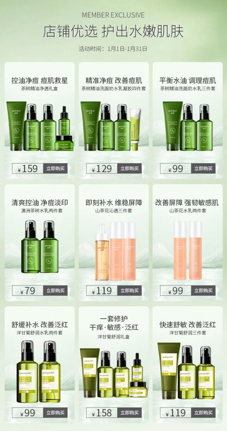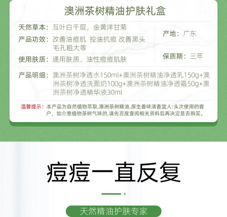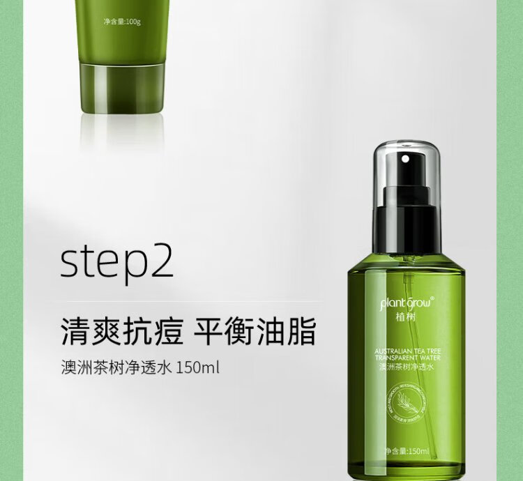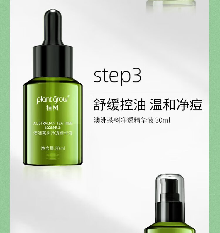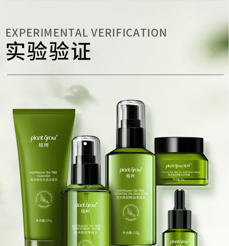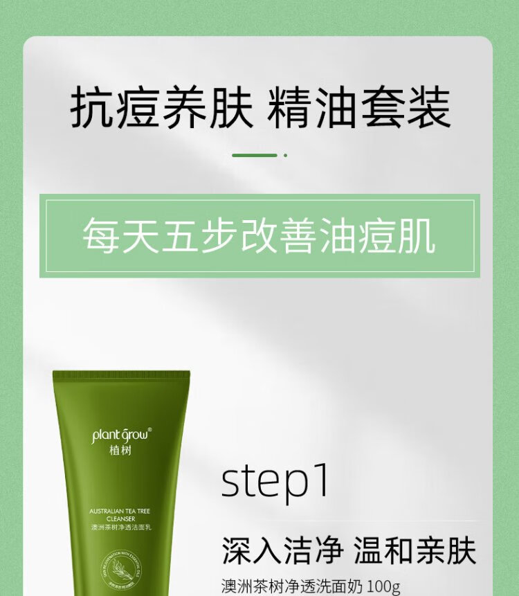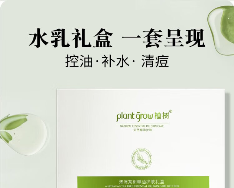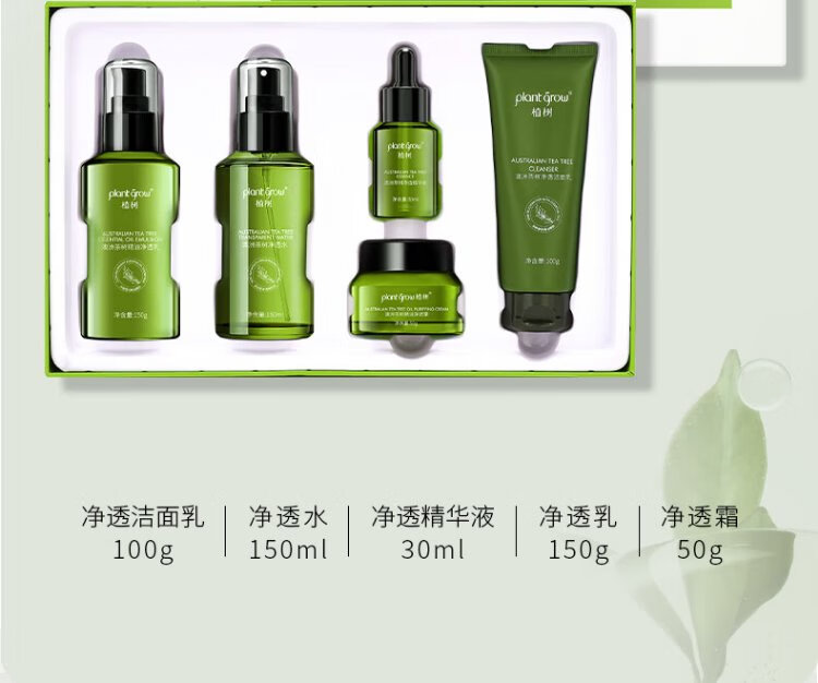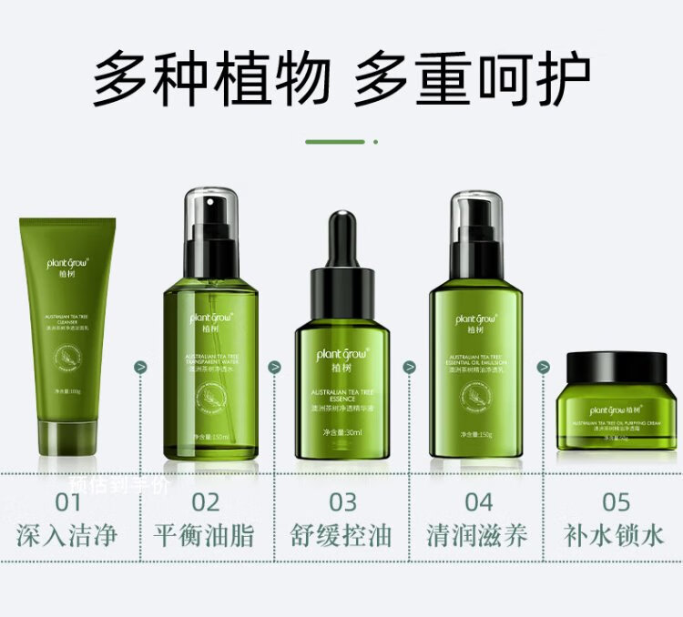 Plant Grow Tea Tree Oil Acne Skin Lotion Set Oil Control, Remove Acne, Closed Acne, Moisturizing and Moisturizing 5-piece Skin Care Product Gift Box