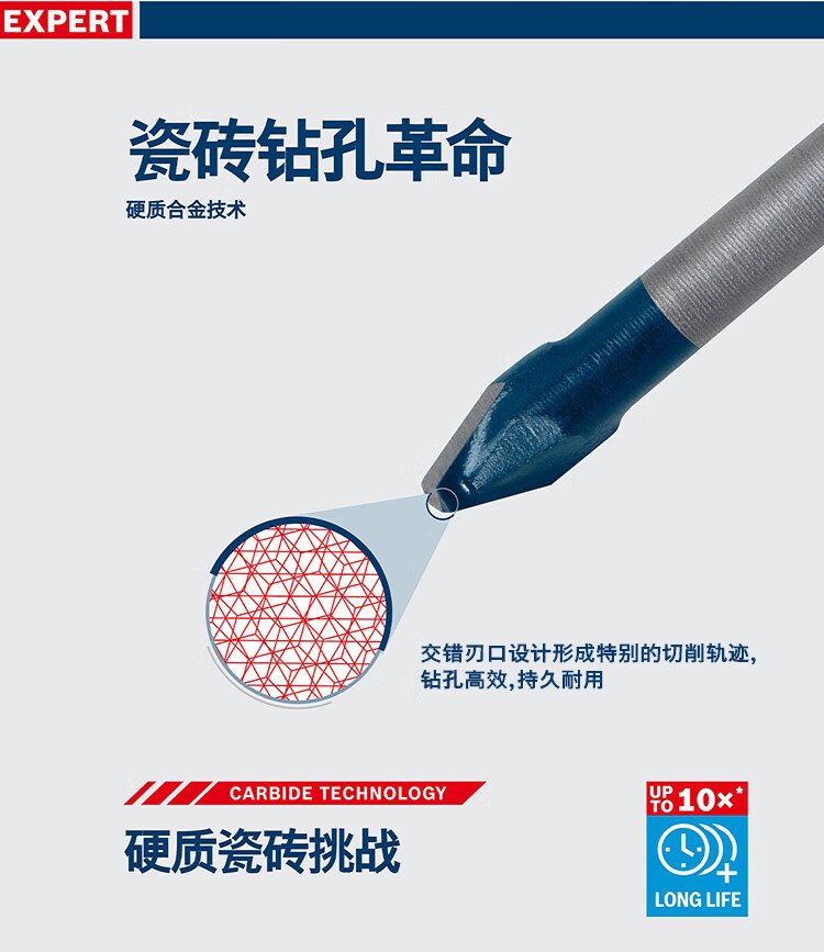Bosch (BOSCH) electric drill bit hexagonal handle hard ceramic tile floor tile stone drilling impact drill driver machine drill bit small blue arrow 6mm