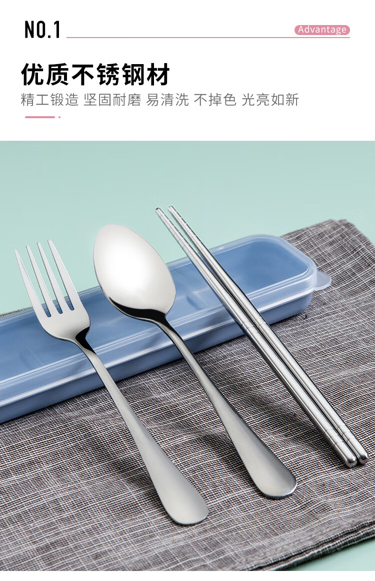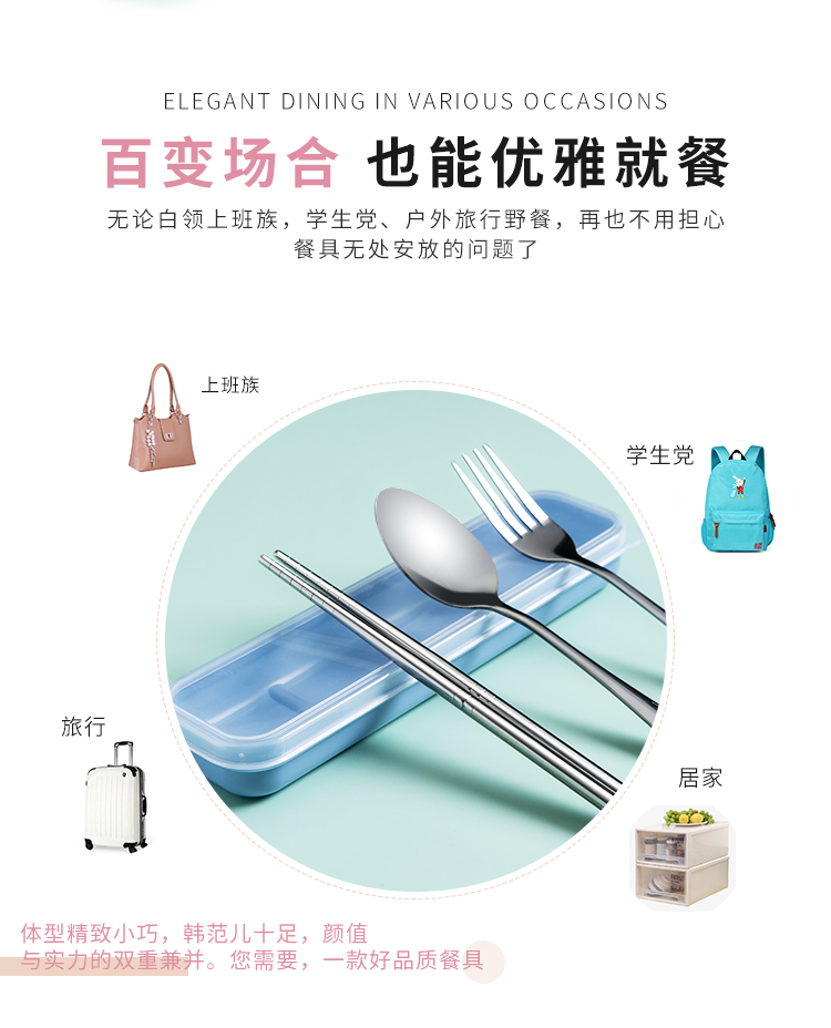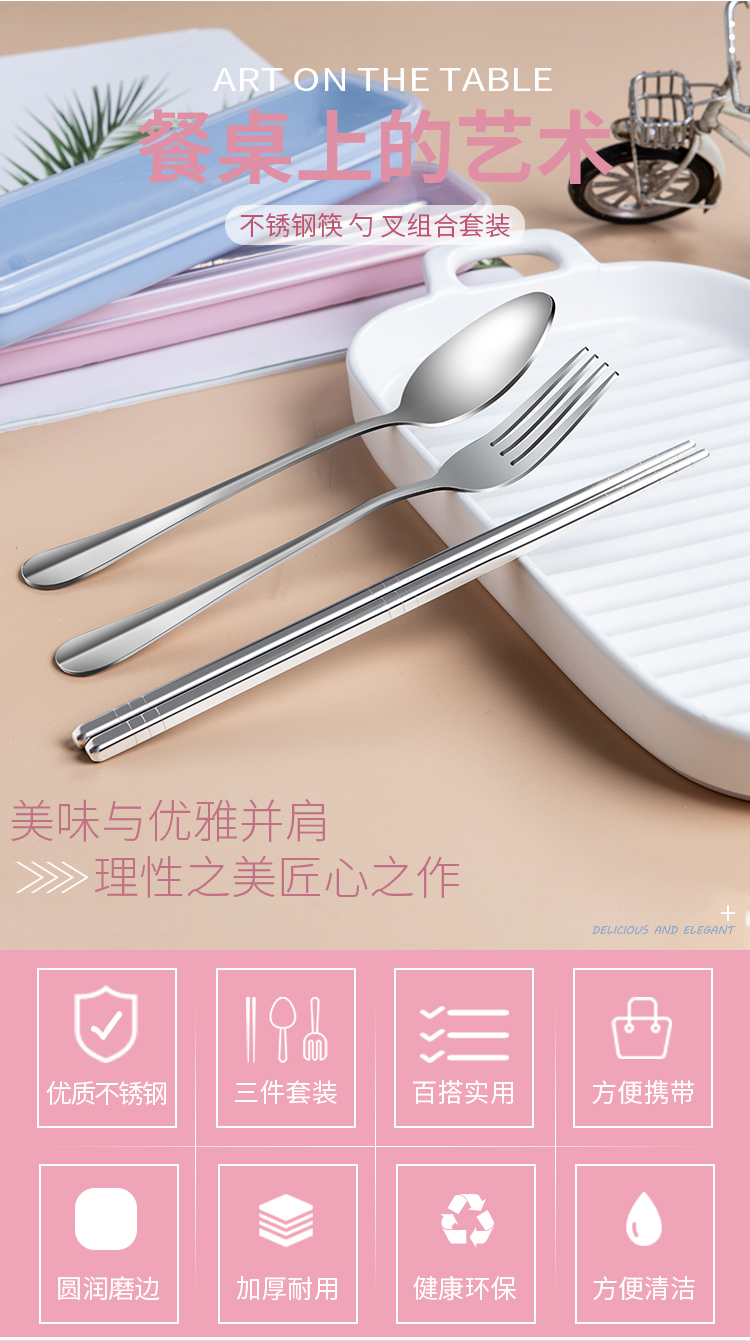 Shihua Fashionable Stainless Steel Portable Tableware Chopsticks Spoon Fork Boxed Tableware Four-piece Set SH-6361
