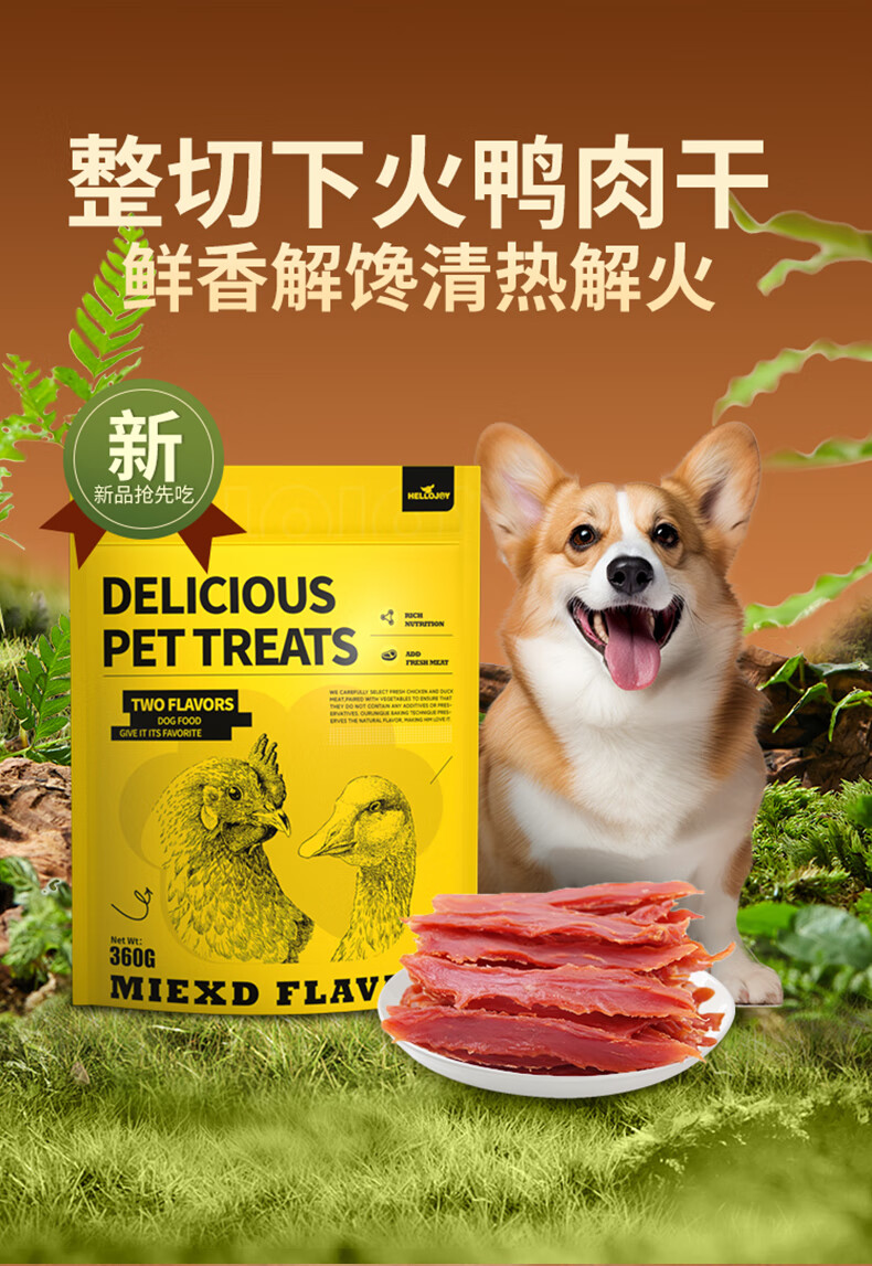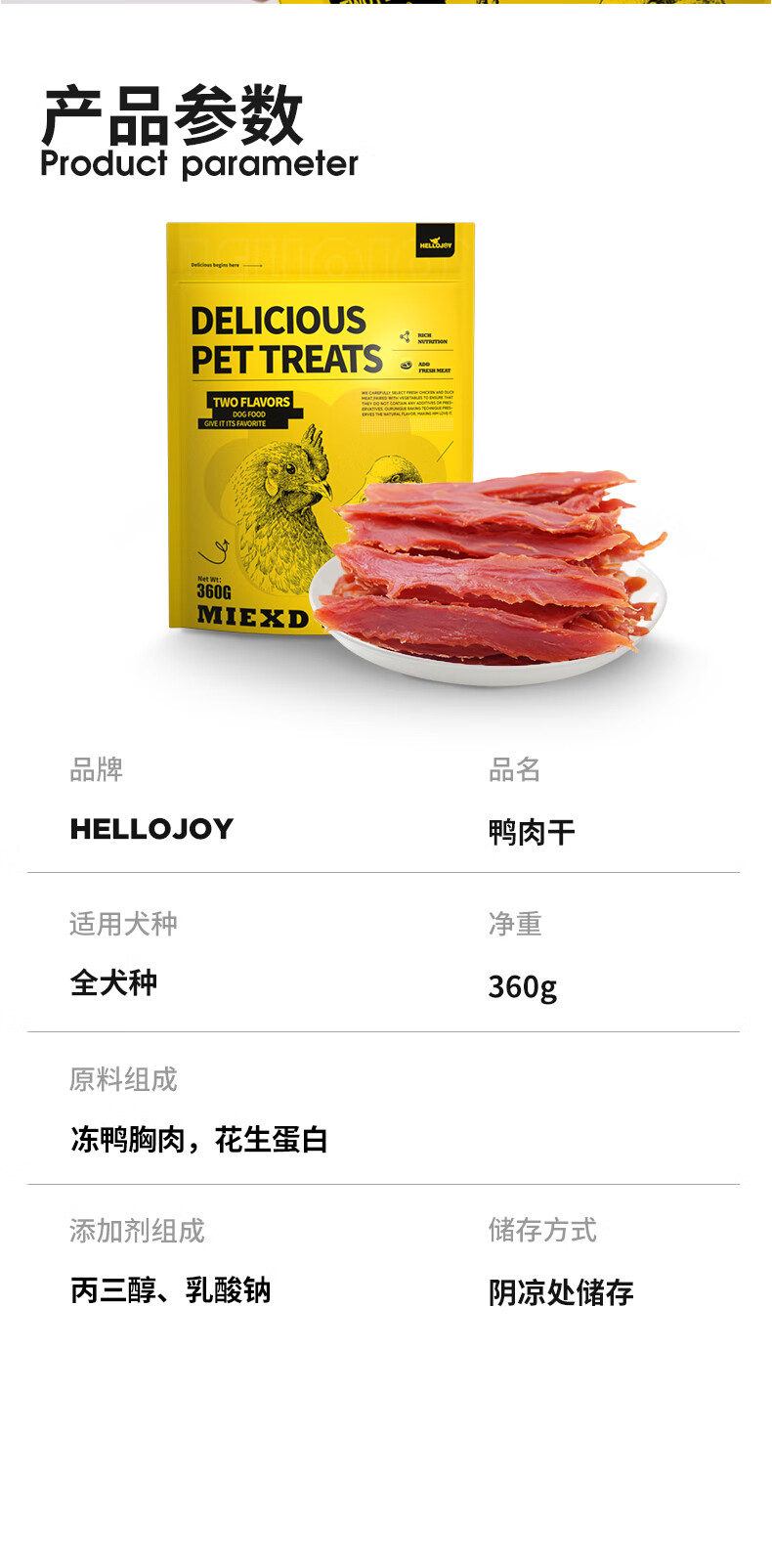 HELLOJOY Dog Snacks Duck Dried Teddy Golden Retriever Puppies Molar Calcium Training Reward Classic Duck Breast 360g