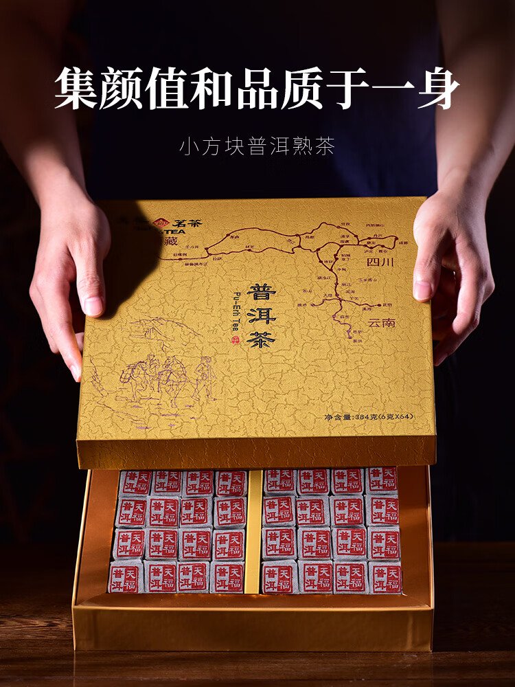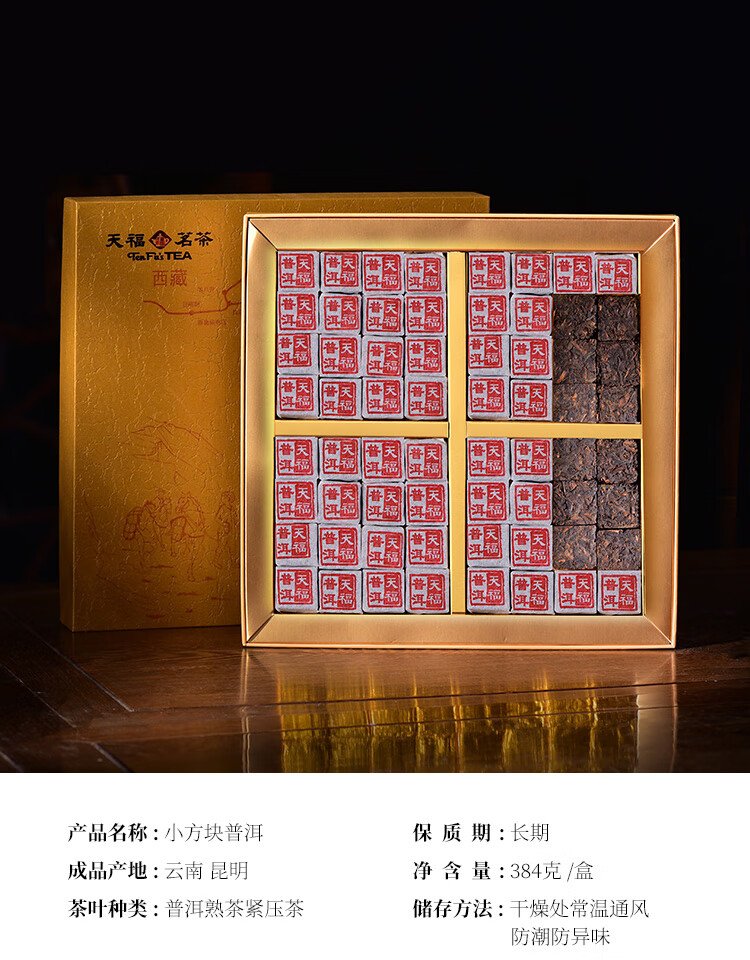 Tianfu Tea Pu'er Tea Small Brick Pu'er Ripe Tea Pressed Tea Yunnan Mini Xiaotuo Tea 384g Gift Box Gift Tea