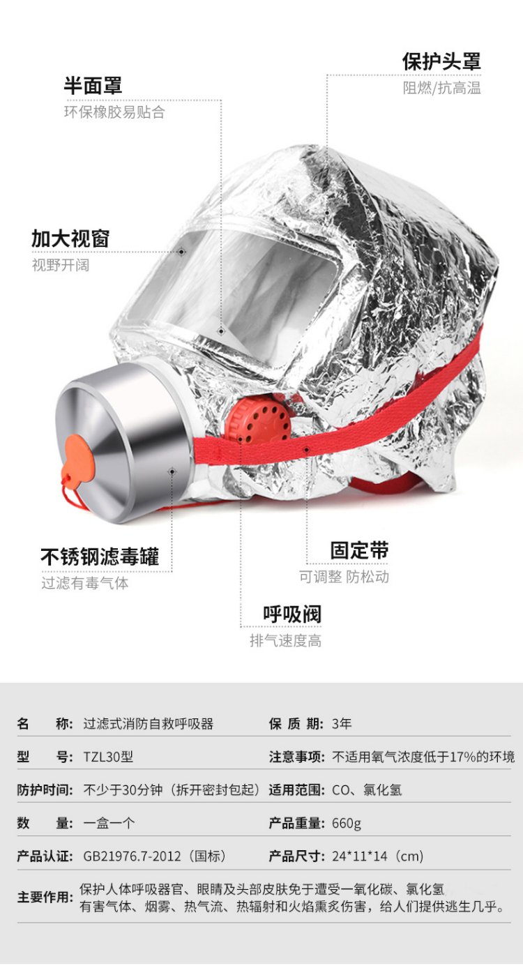 Minggu gas mask fire mask anti-smoke fire mask escape filter self-rescue respirator TZL30 CY1650