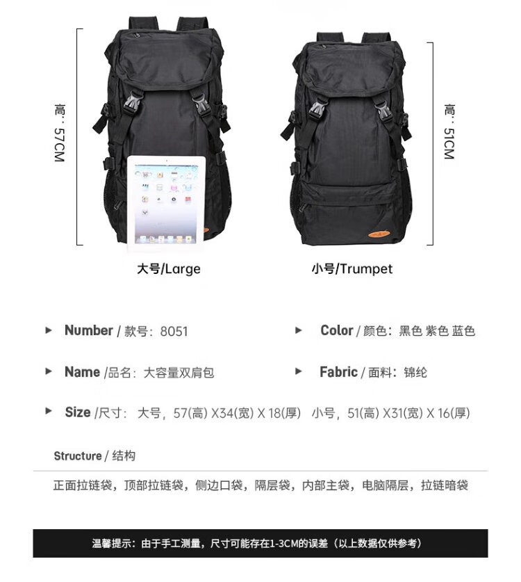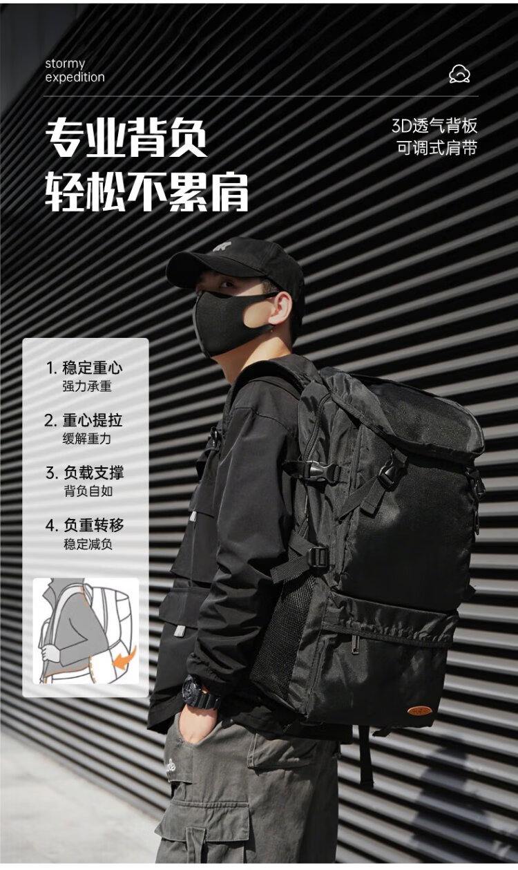 Landcase travel bag men's backpack large capacity backpack luggage bag multi-functional outdoor sports mountaineering bag 8051 black large