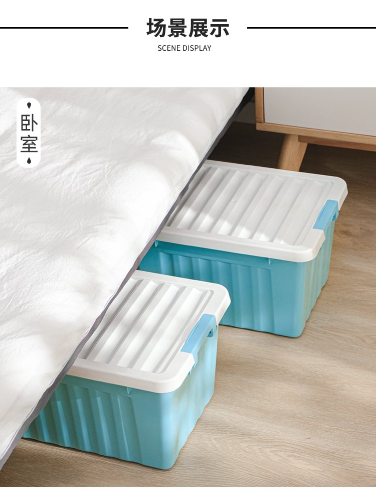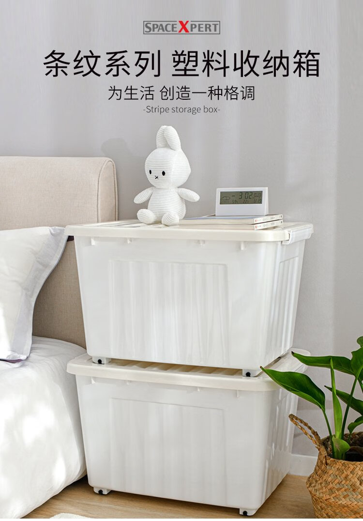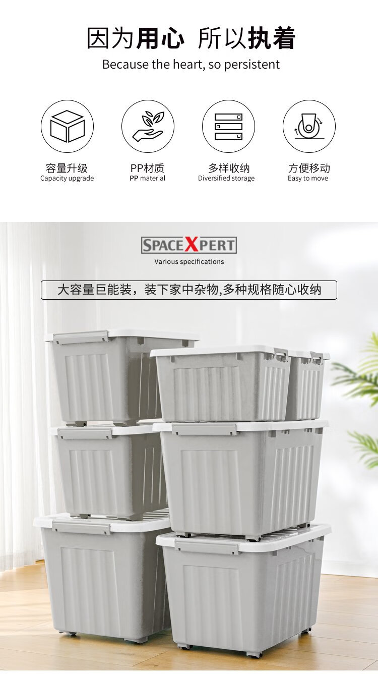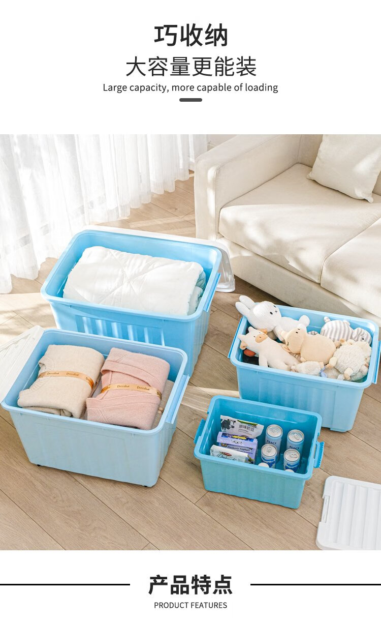 SPACEXPERT clothing storage box extra large plastic organizer car storage box 80L blue 1 pack with wheels