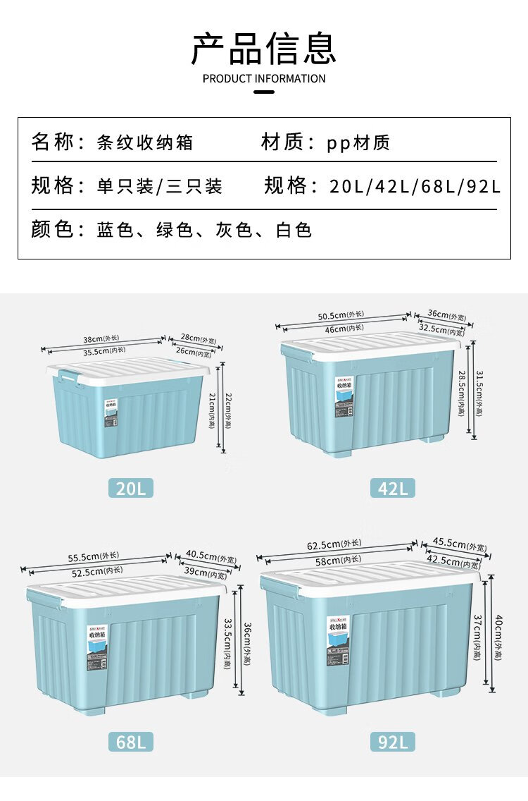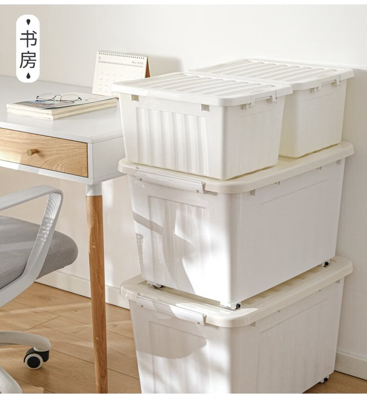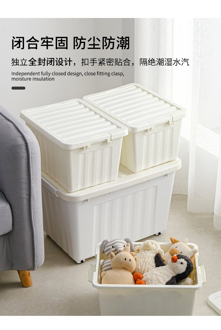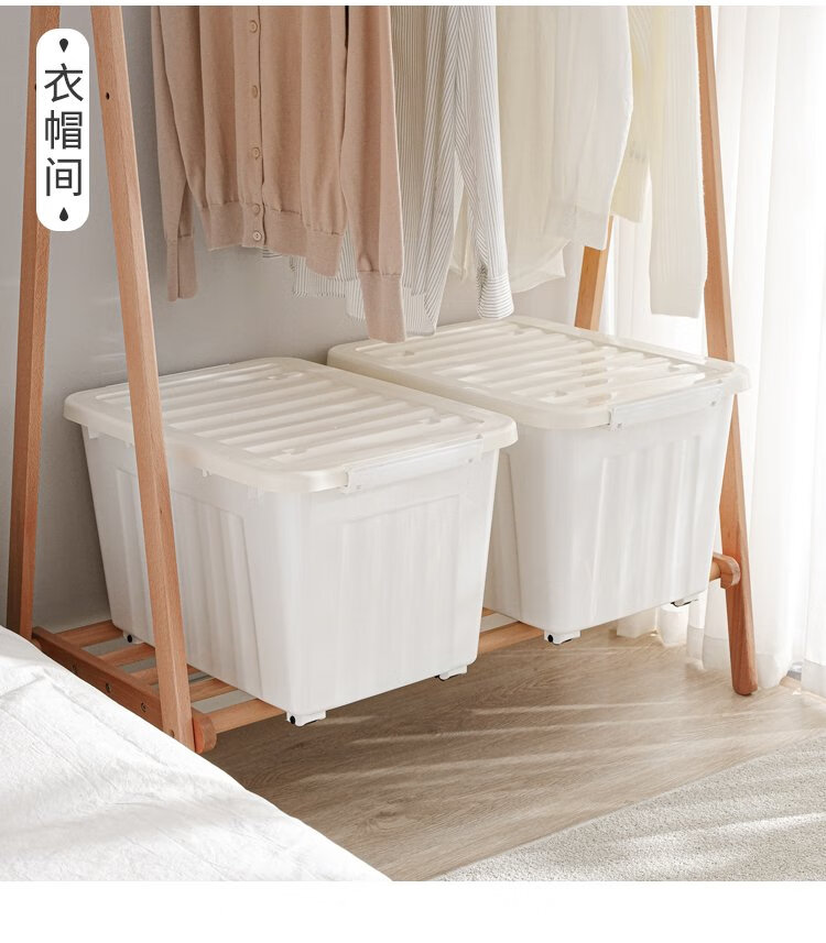 SPACEXPERT clothing storage box extra large plastic organizer car storage box 80L blue 1 pack with wheels