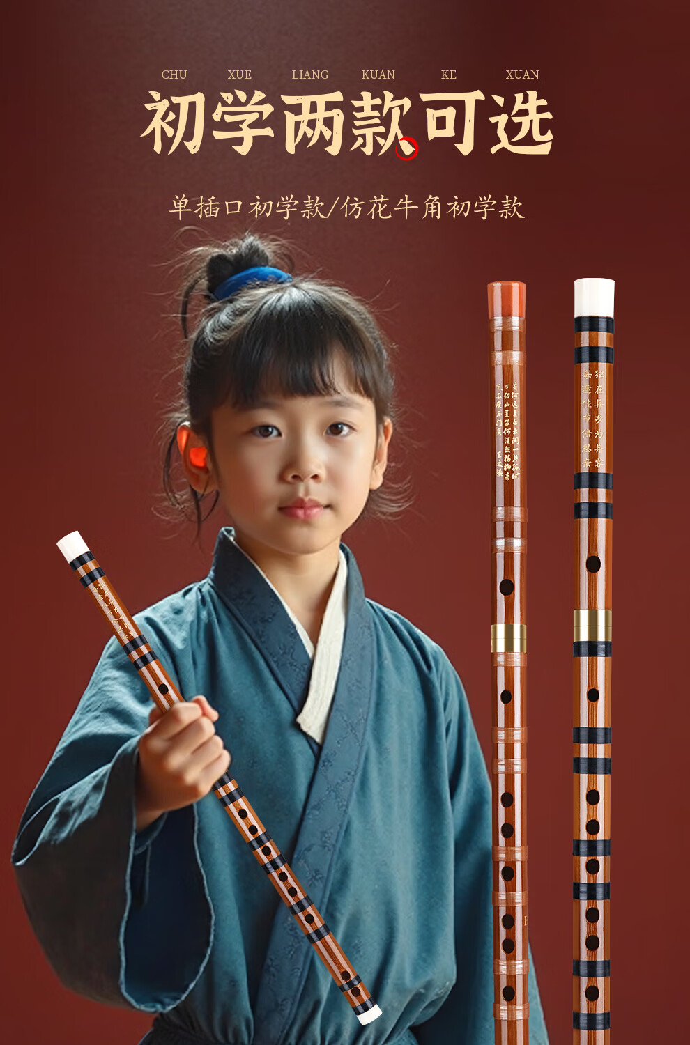 Minsine Bamboo Refined Flute Bamboo Flute G Key Single Insert White Copper Professional Flute National Wind Instrument D45 Black