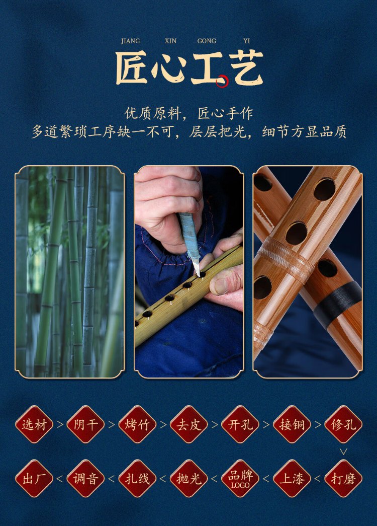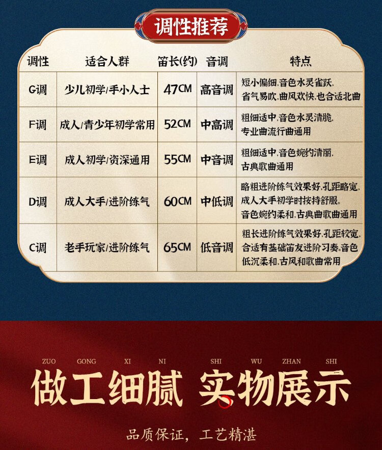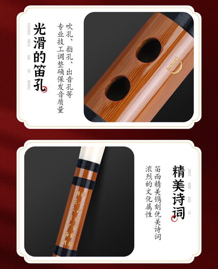 Minsine Bamboo Refined Flute Bamboo Flute Zero Basic Beginners Introduction Flute National Wind Instrument D18