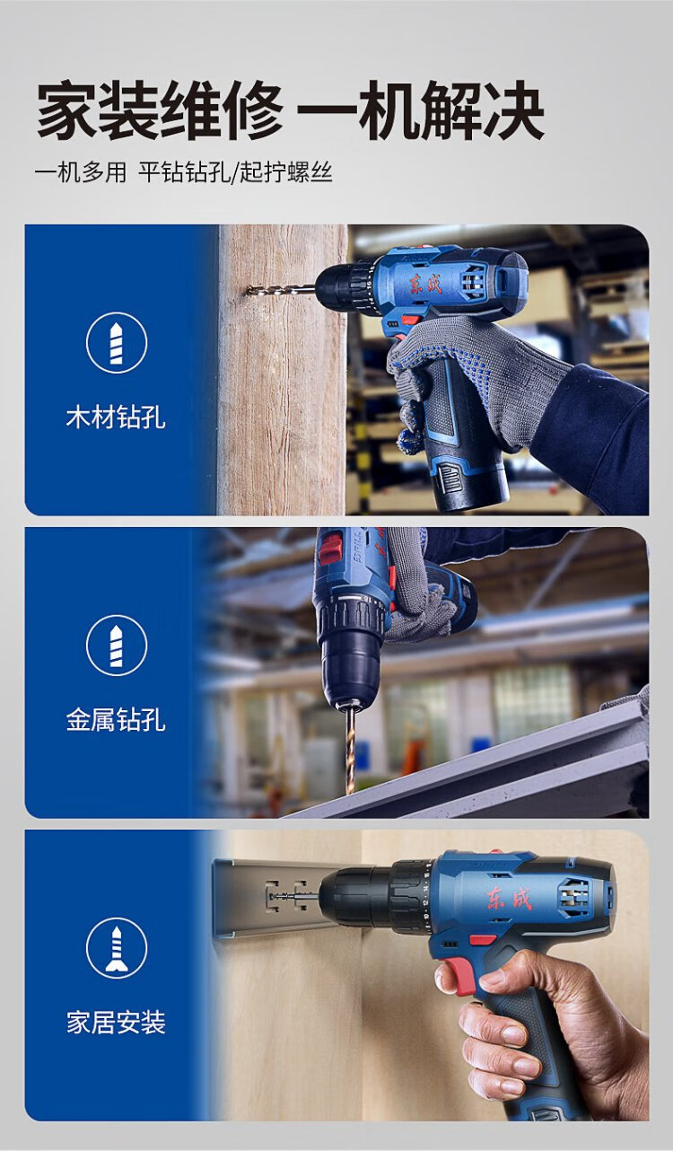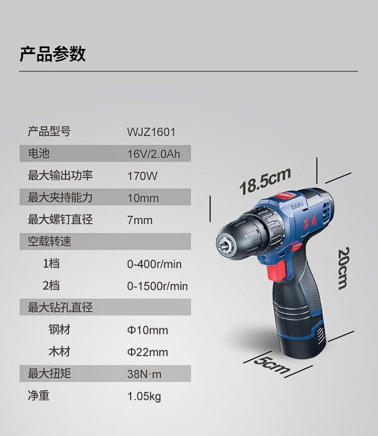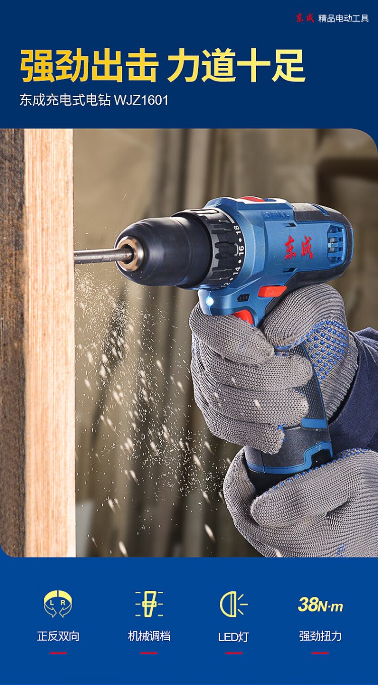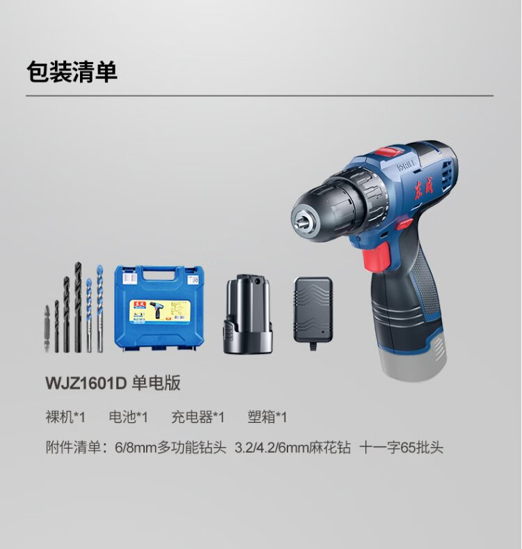 Dongcheng lithium electric drill WJZ1601D hand electric drill rechargeable electric screwdriver machine household 16V multi-function set