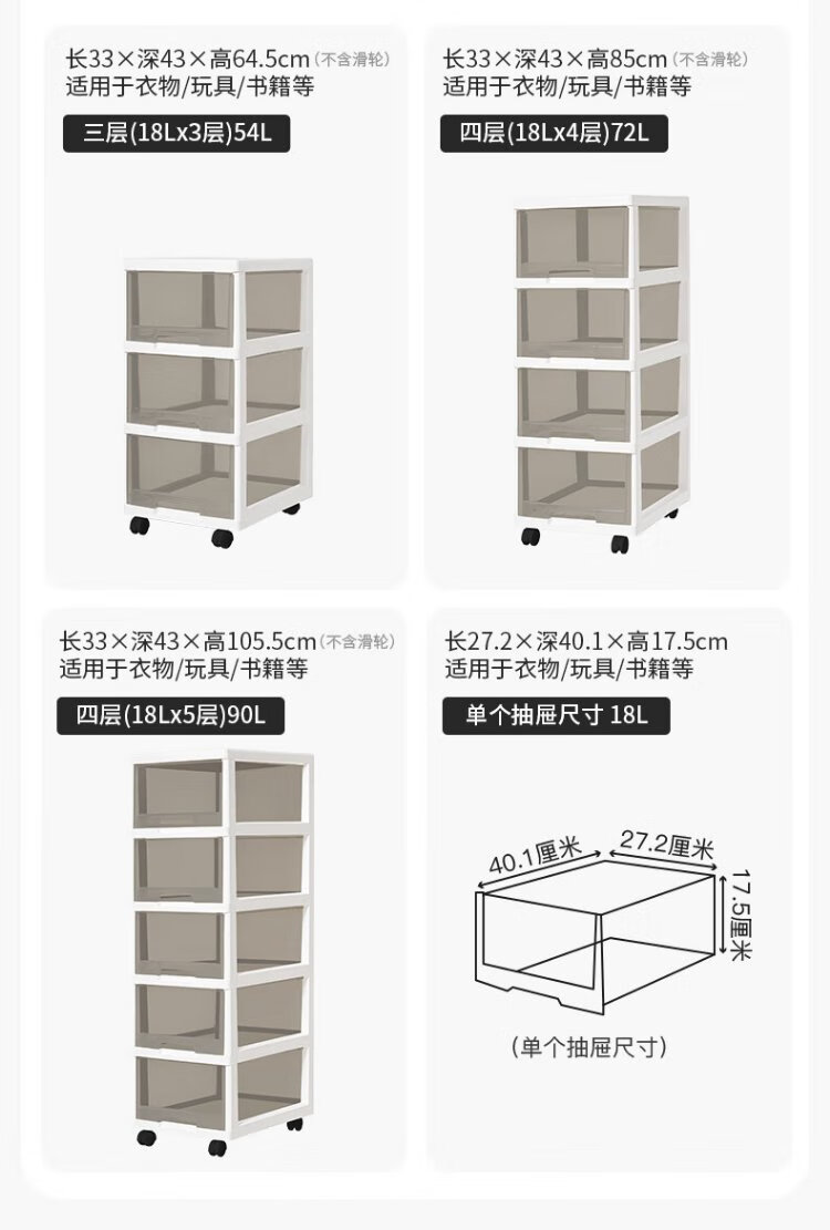 Xitianlong installation-free plastic storage cabinet bathroom drawer storage cabinet children's wardrobe bedside table storage box 5-layer gray