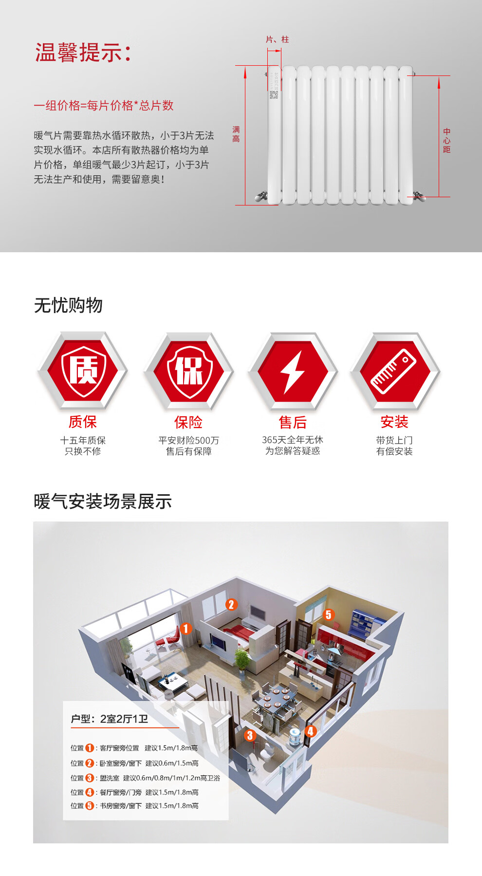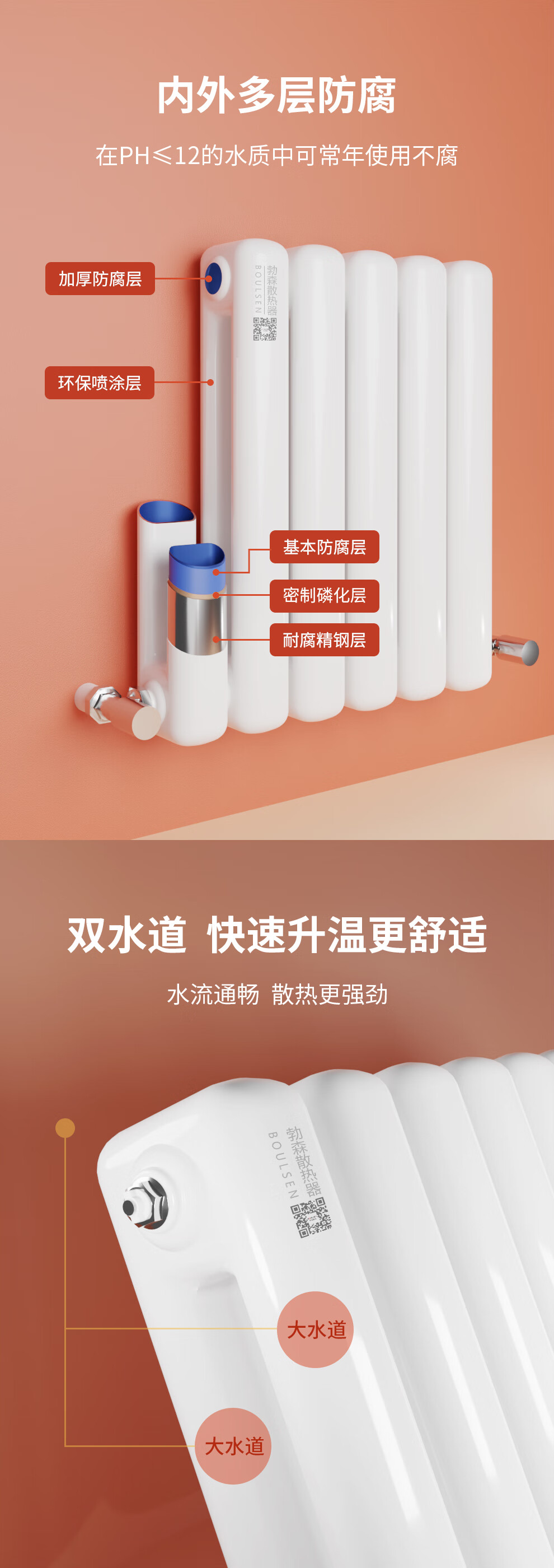 Berson radiator wall-mounted household water heating radiator living room bedroom whole house custom-made steel 60FY1800mm high