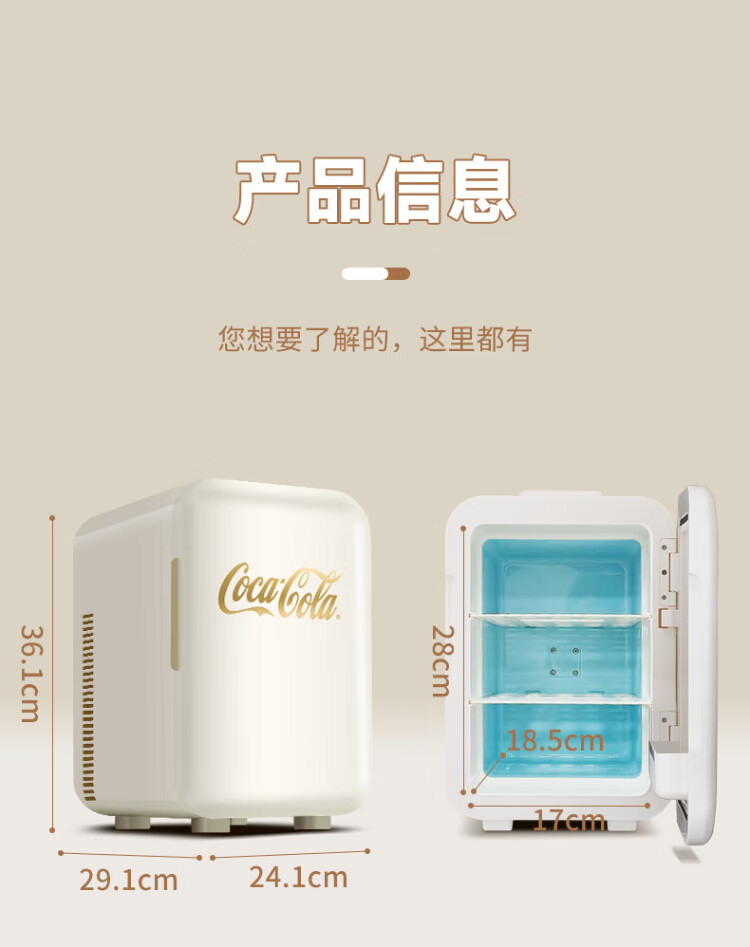 Coca-Cola Car Refrigerator 12L Car Home Dual-Purpose Mini Refrigerator Student Dormitory Office Skin Care Products Cooling and Warming Mini Refrigerator