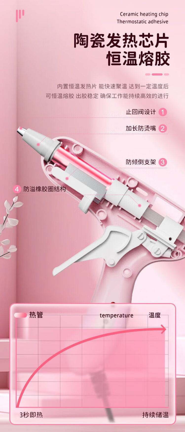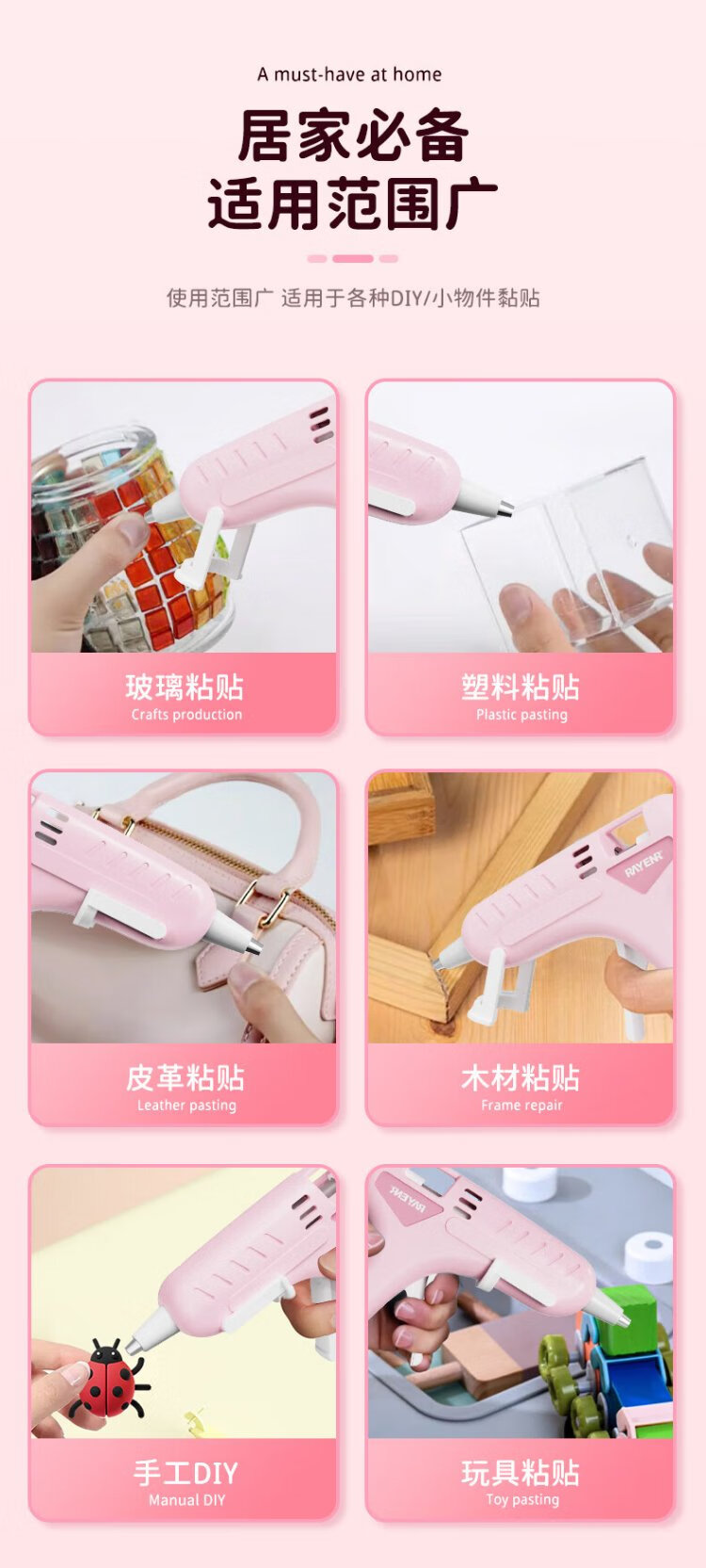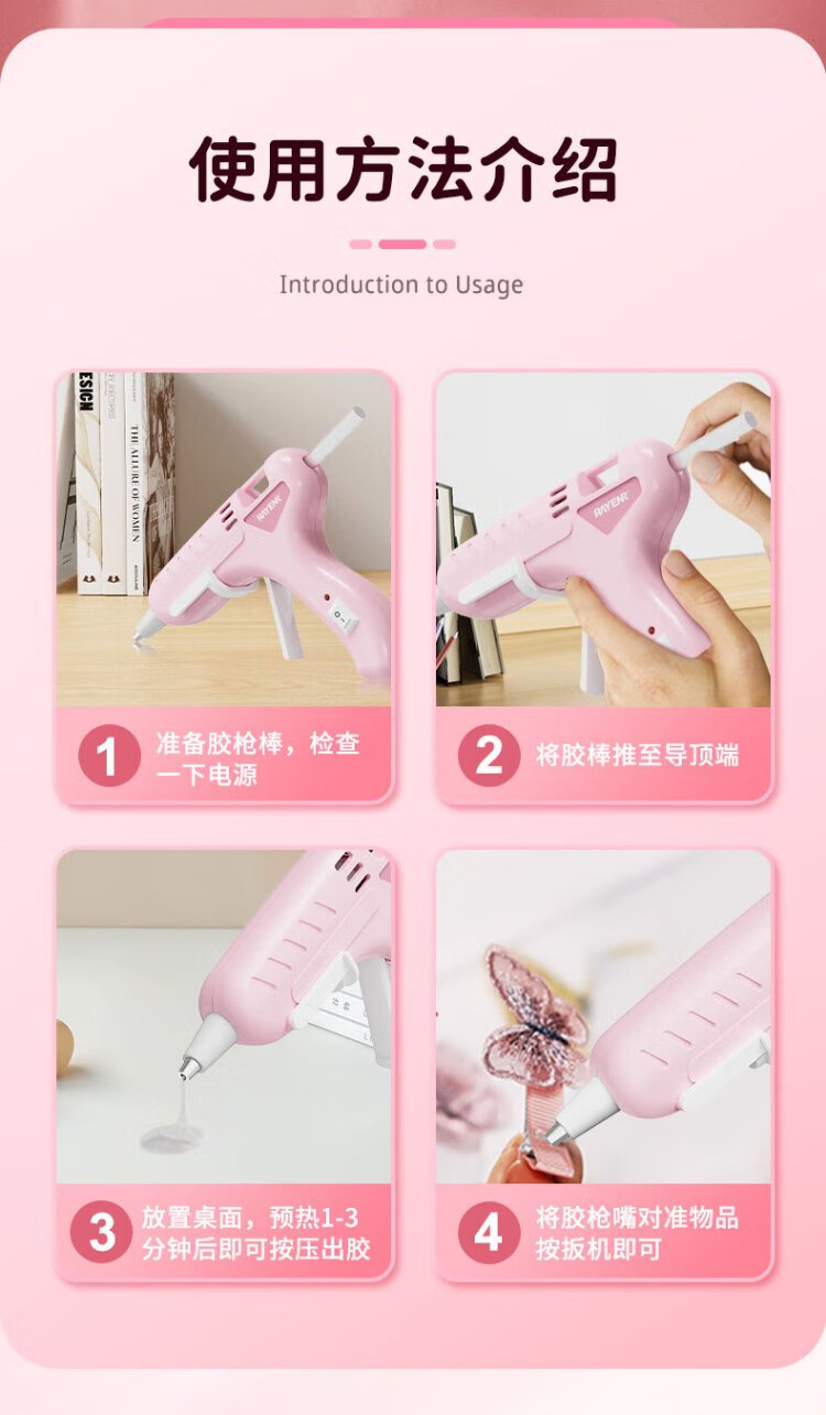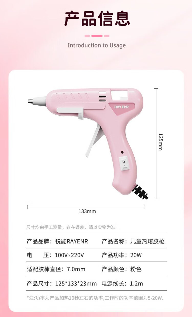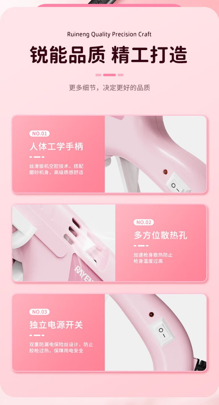 Ruineng hot melt glue gun household hot melt glue heating high viscosity 7MM glue stick 20W children's handmade DIY glue gun