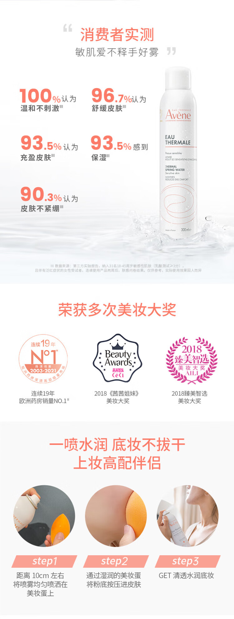 Avène Active Spring Moisturizing Spray 300ml*2 repairs redness and soothes sensitive skin imported birthday gift