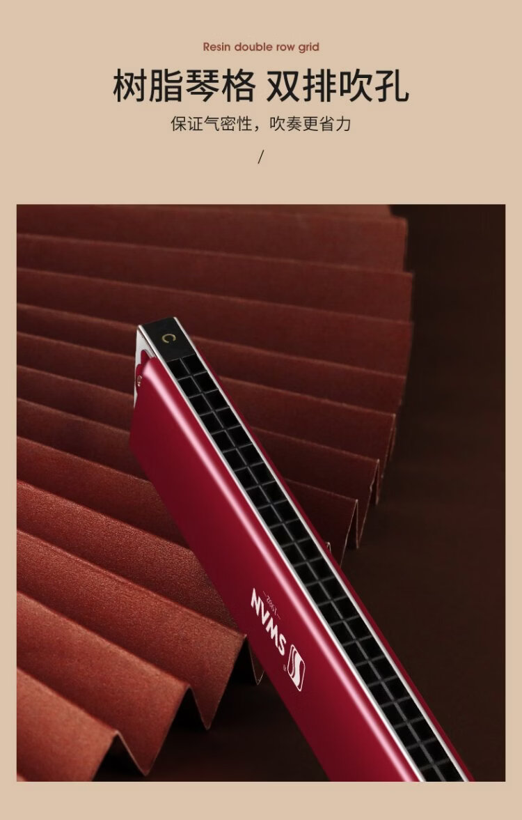 SWAN 24-hole polyphonic harmonica advanced adult beginner professional playing harmonica C key Chinese style design (red)