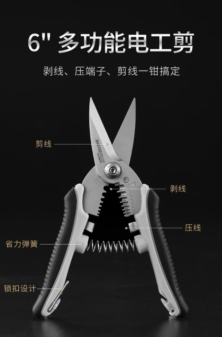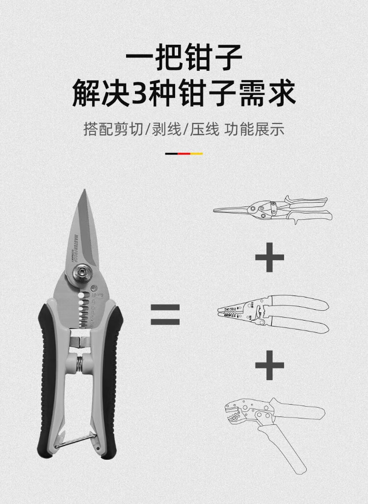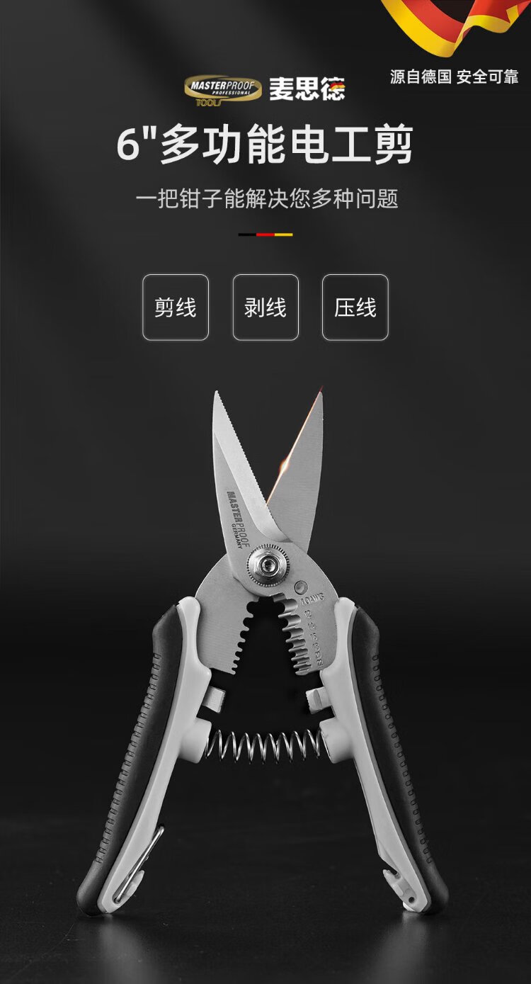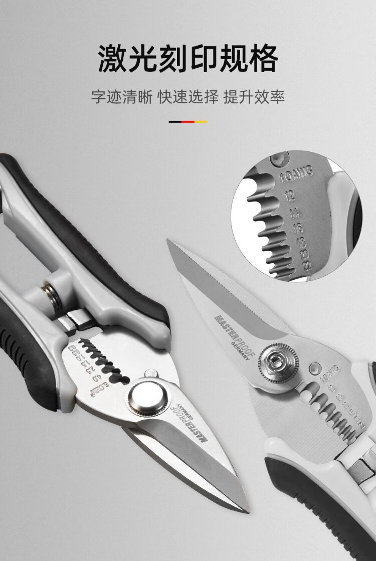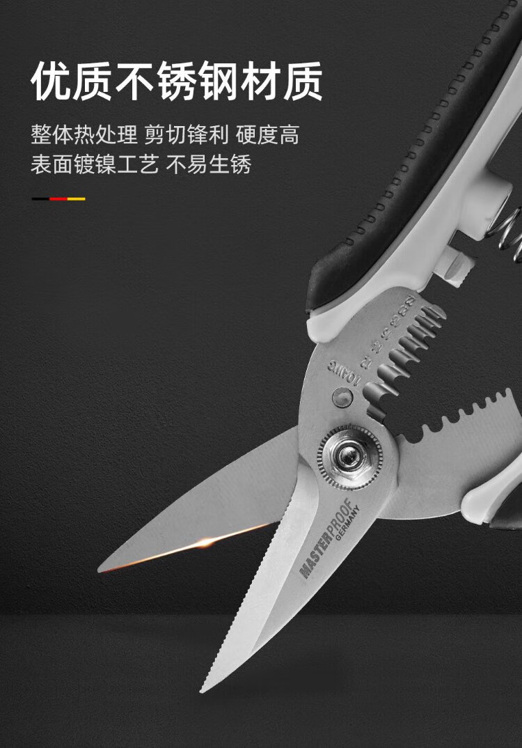 MASTERPROOF stainless steel electrician's scissors, multifunctional wire stripper, wire crimping pliers, wire cutter, wire trough scissors, iron sheet cutter, cable knife