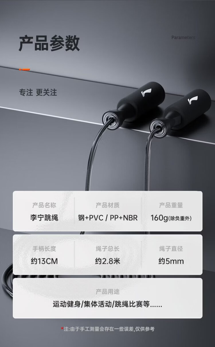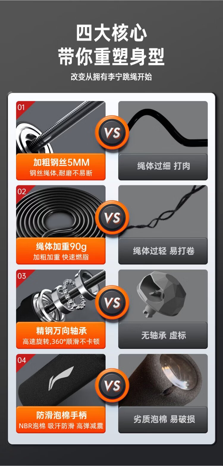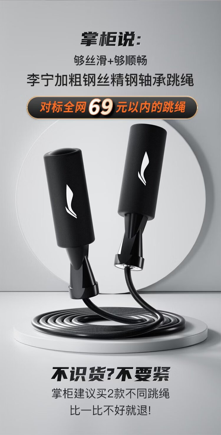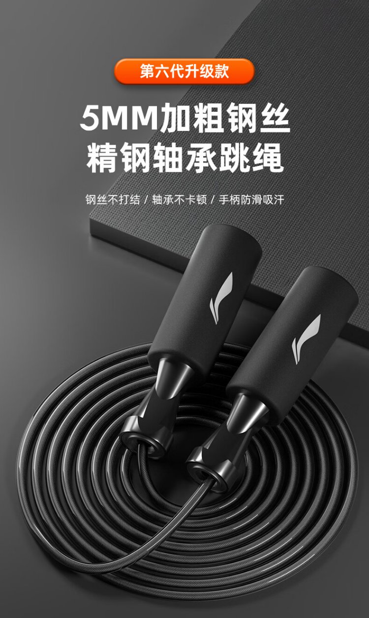 Li Ning (LI-NING) skipping rope for adults, children, primary and secondary school students, professional high school entrance examination, steel wire rope skipping, fitness and weight loss racing