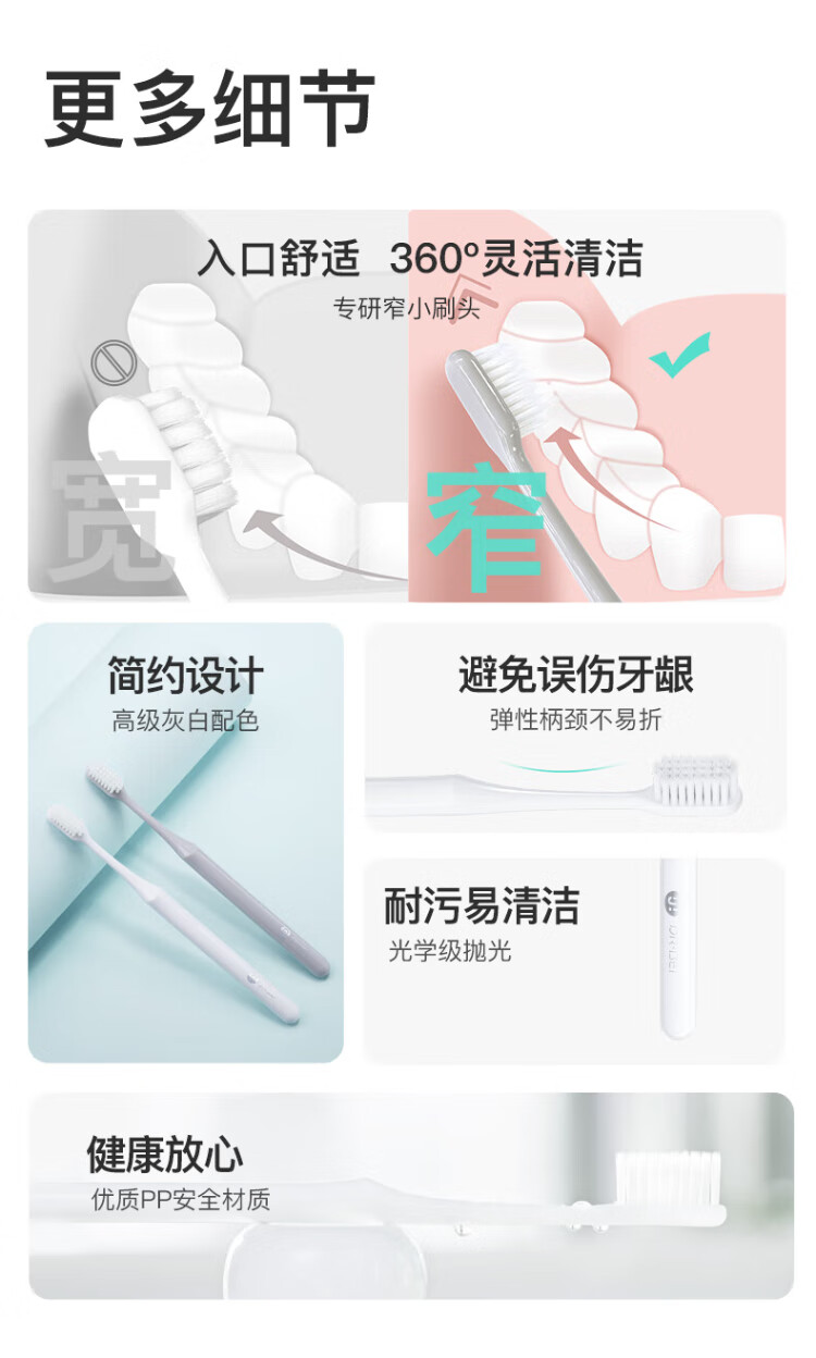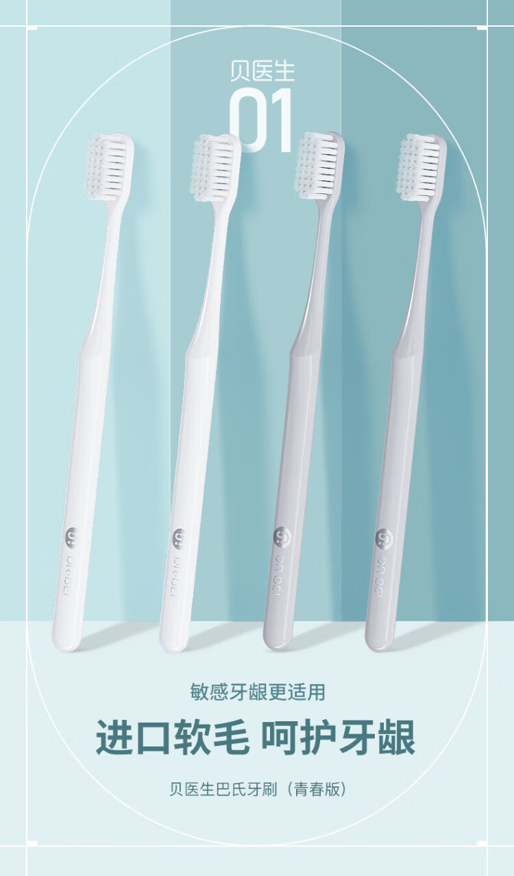 Doctor Bei DR.BEI soft-bristled toothbrush, fine-bristled gum-protecting imported soft bristles, small brush head, youth version gray single pack
