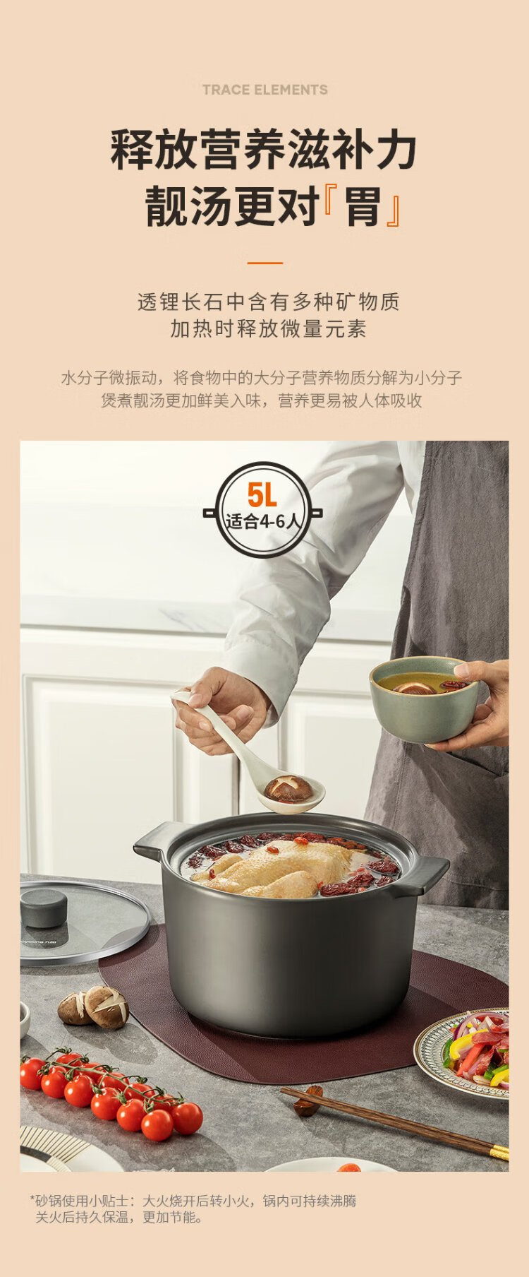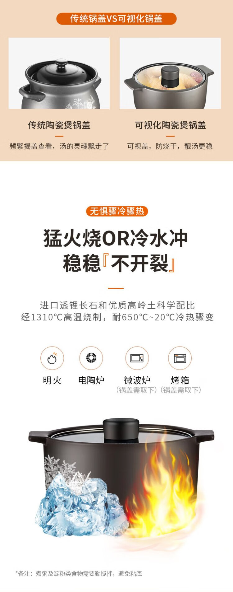 Joyoung casserole ceramic pot soup pot stew pot 5L high temperature resistant ceramic pot soup pot rice boiling medicine cooking rice TCB5003