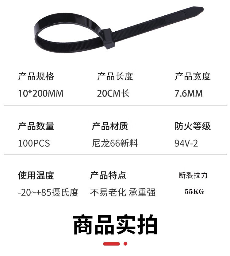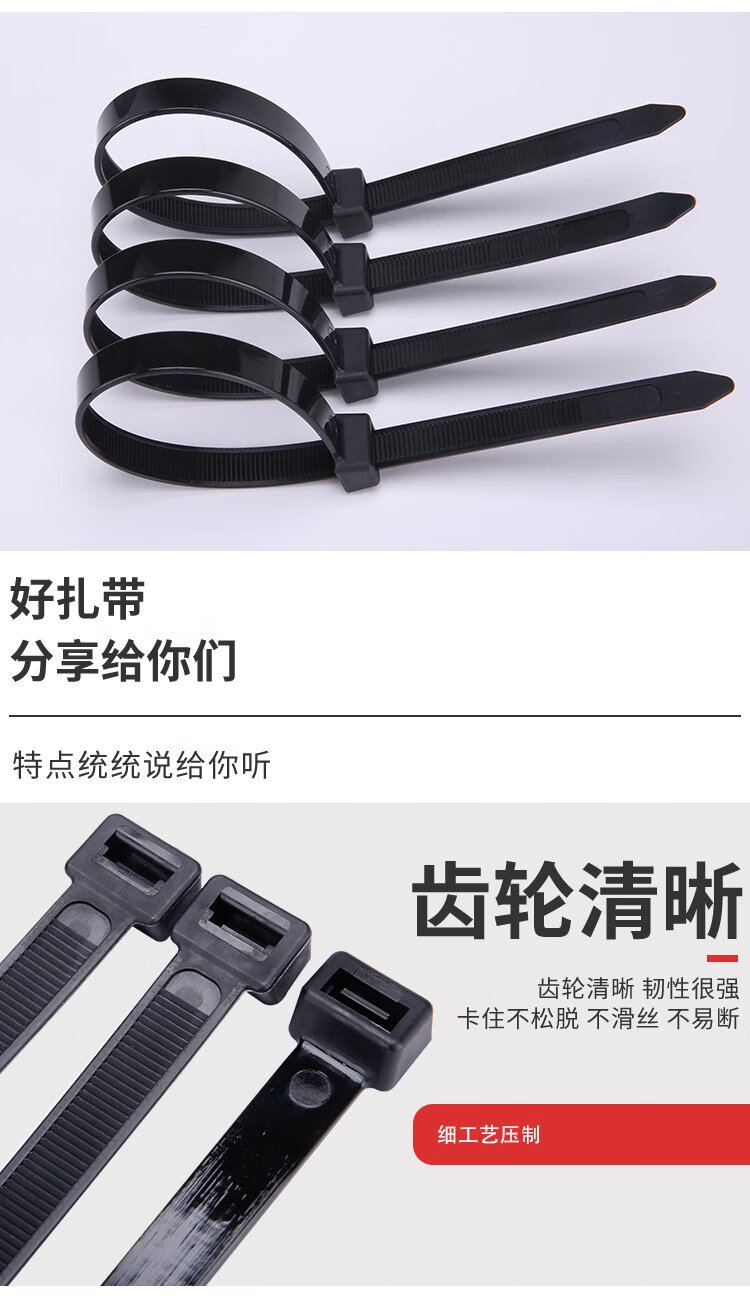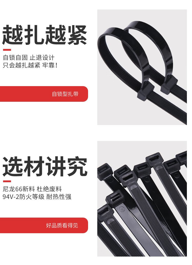 Hasdick Beijing warehouse delivery black self-locking large nylon cable tie 50cm long 7.5mm wide 100 pieces/pack HKZ-90