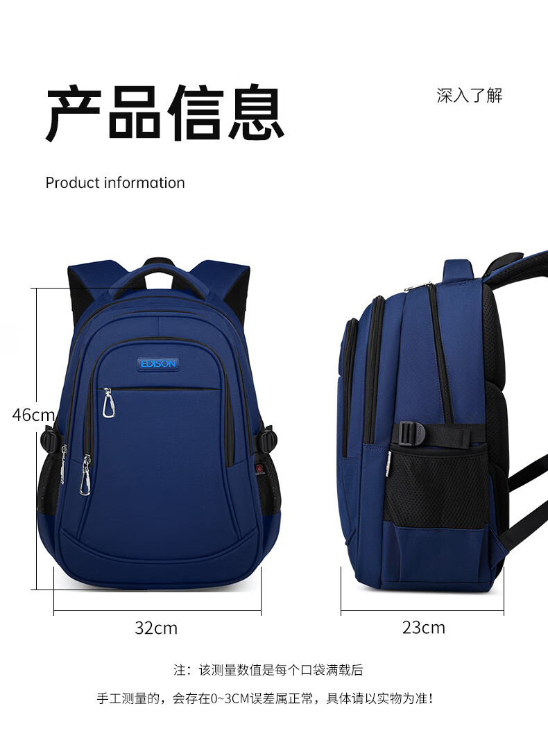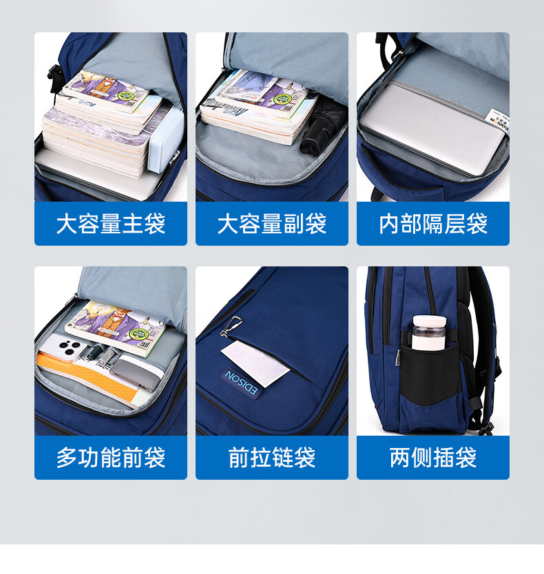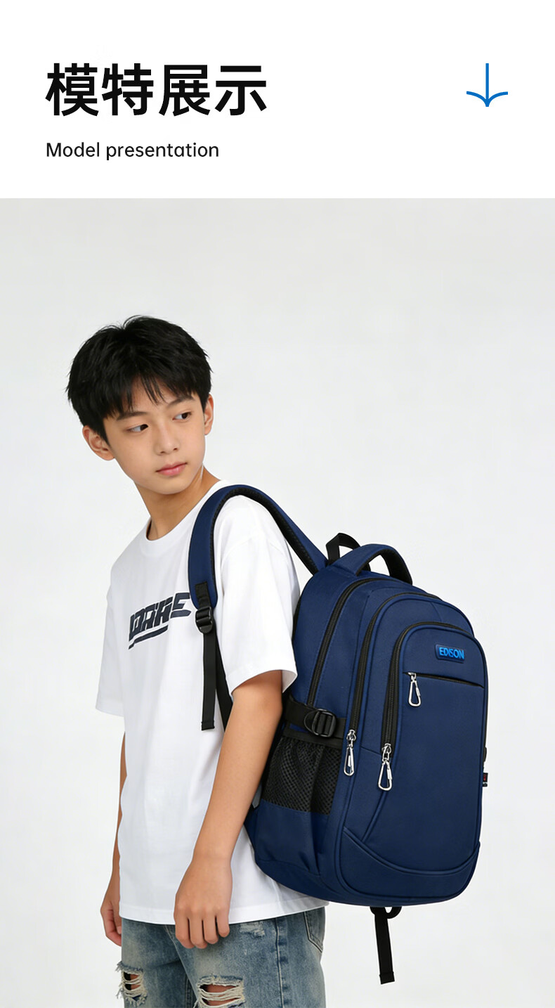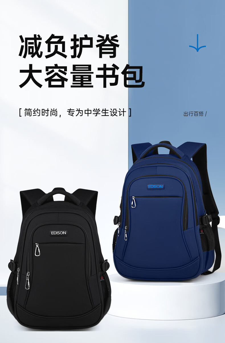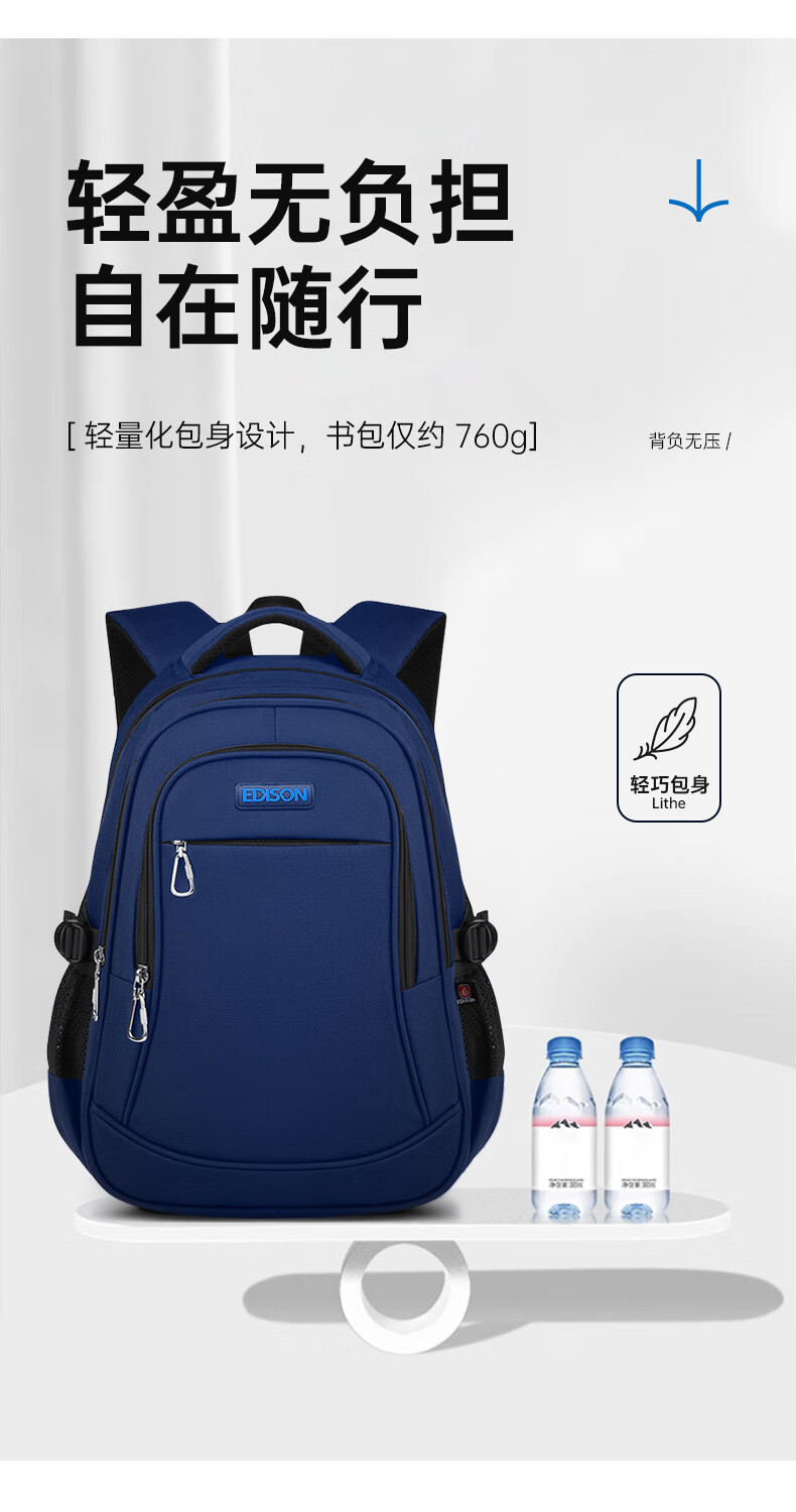 Edison Edison junior high school student schoolbag spine protection, load reduction, water repellent, 6-9th grade middle school student large-capacity backpack L796-9